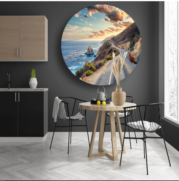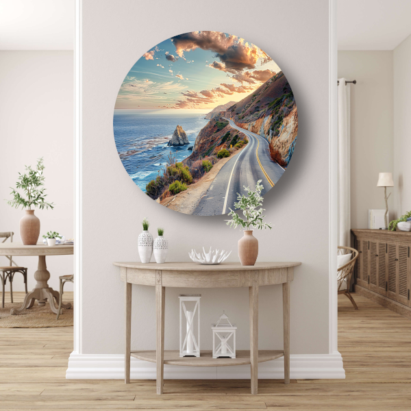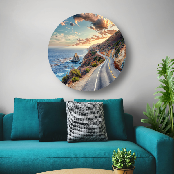 Impressionistieke Landschapsweg aluminium muurcirkel