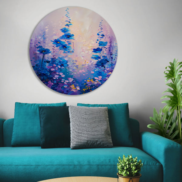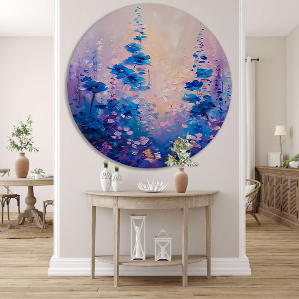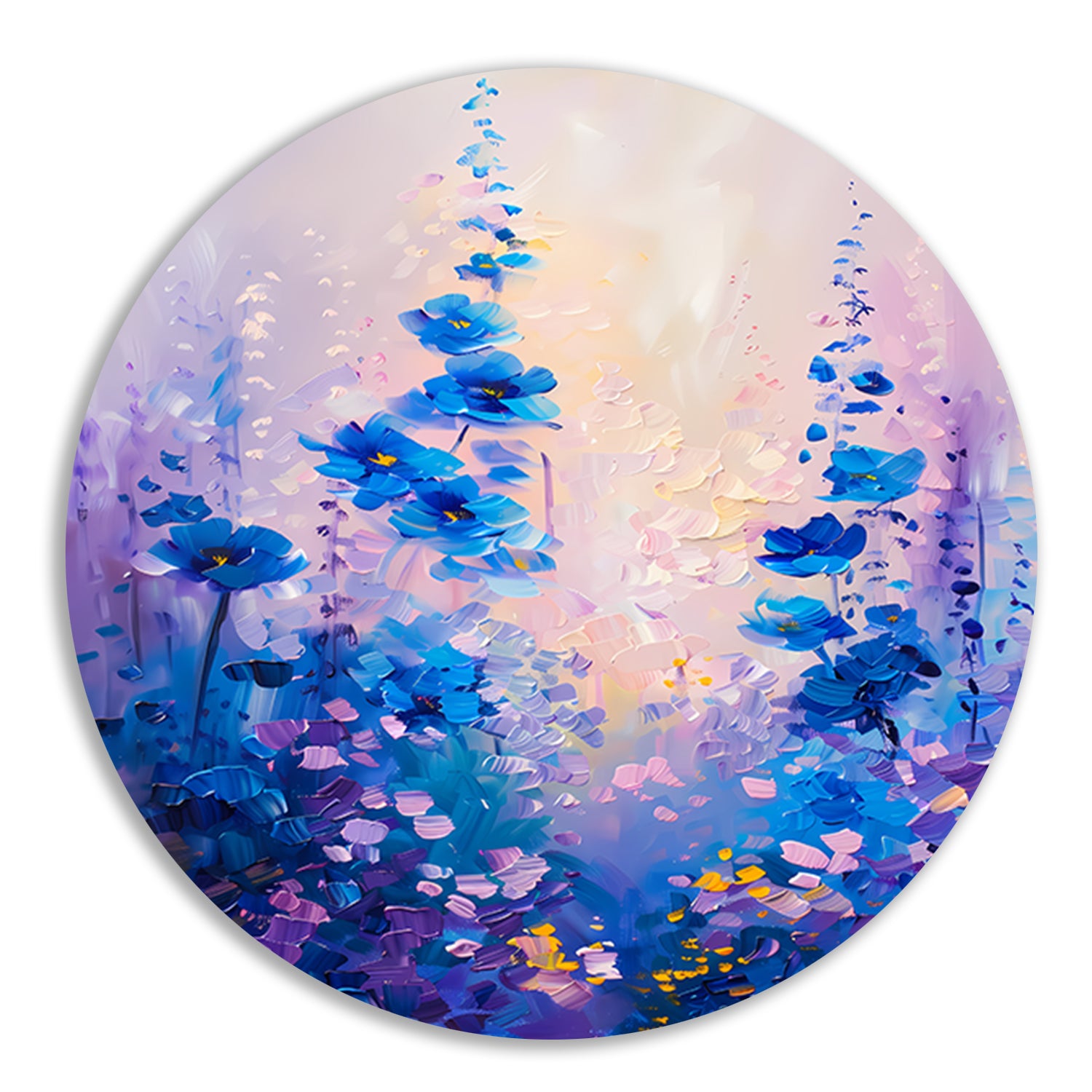 Impressionistisch bloemenveld in levendige kleuren aluminium muurcirkel