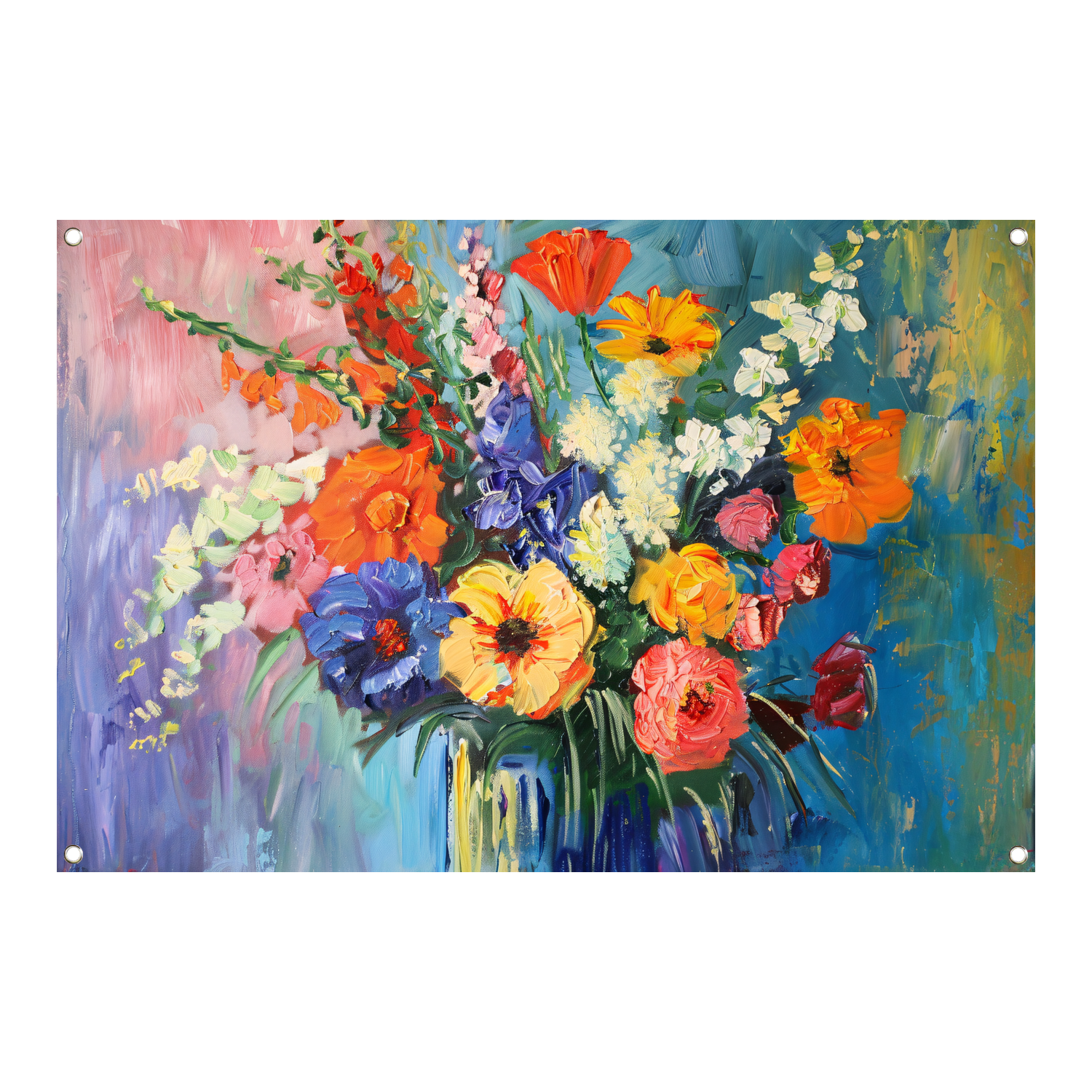 Impressionistisch schilderij van kleurrijke bloemen in vaas tuinposter
