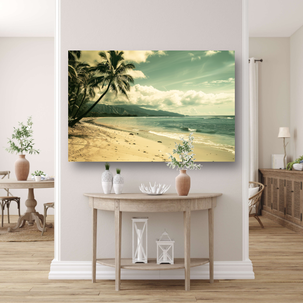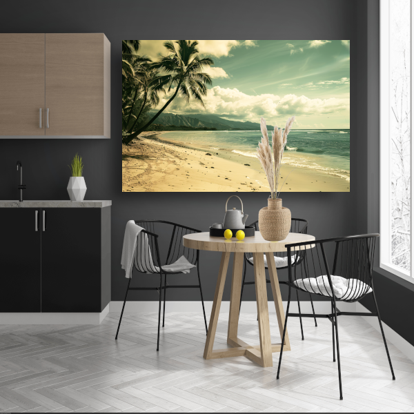 Impressionistisch Strandgezicht met Palmbomen canvas met baklijst