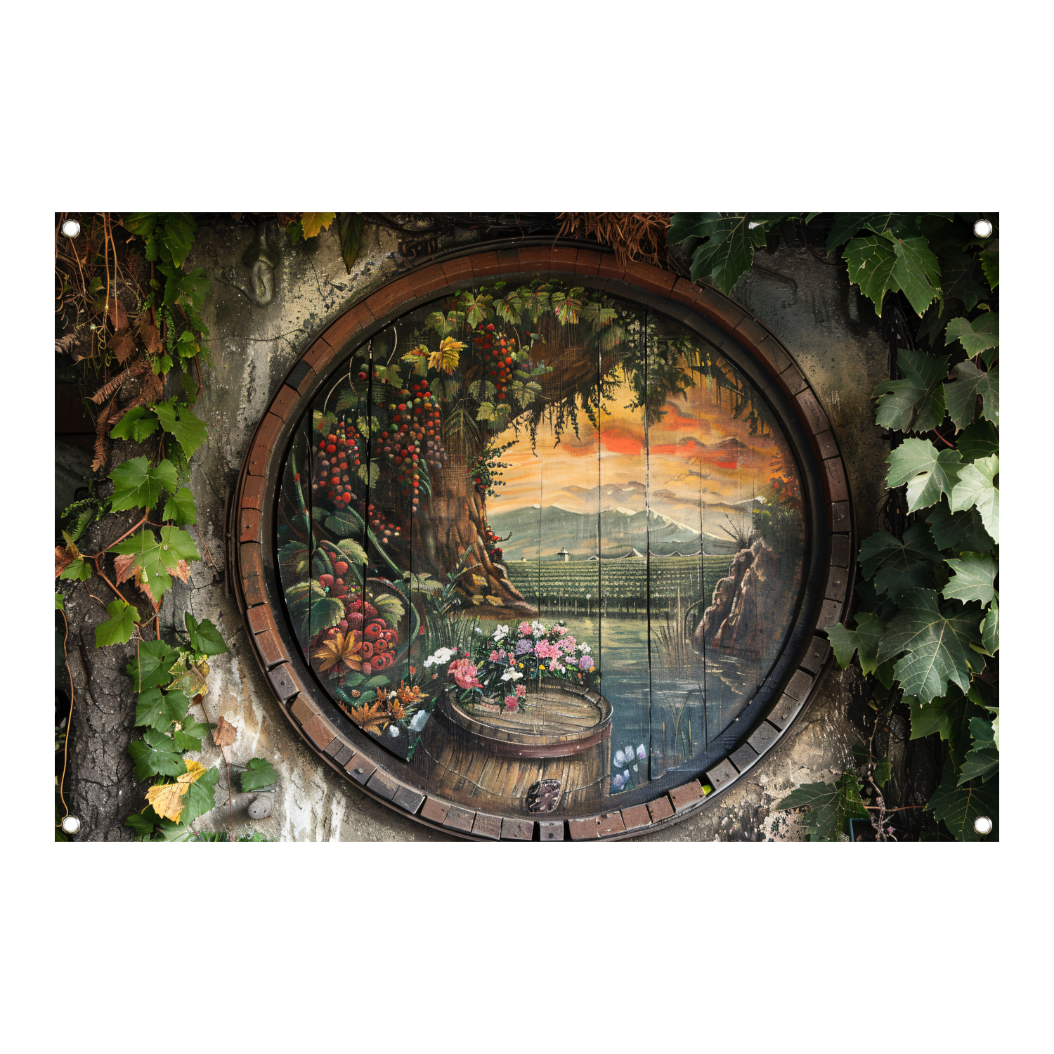 Impressionistisch Wijnvat Landschap tuinposter