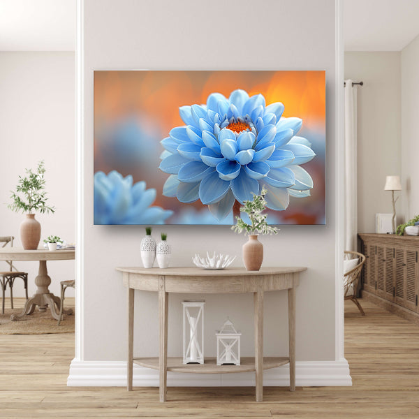 Impressionistische blauwe bloem canvas met baklijst