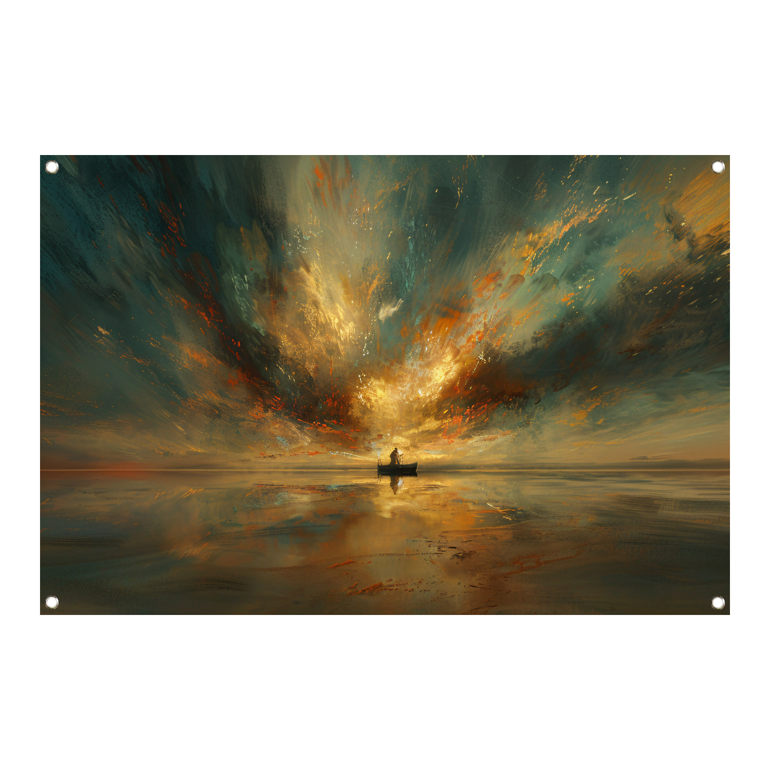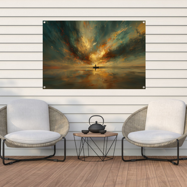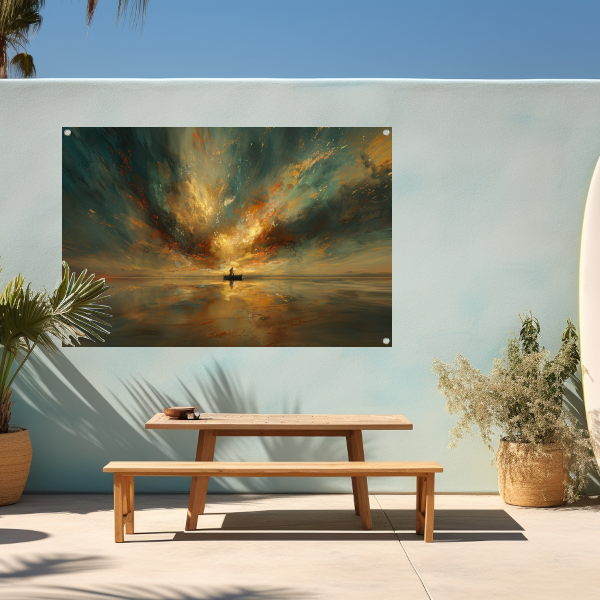 Impressionistische boot op woeste zee tuinposter