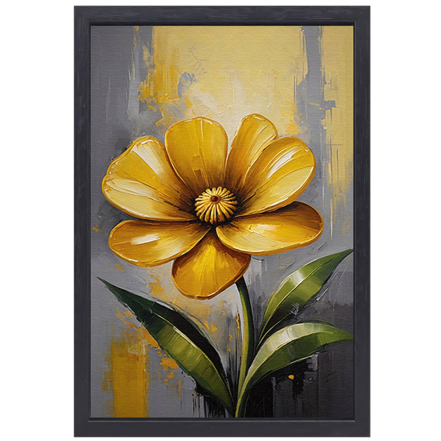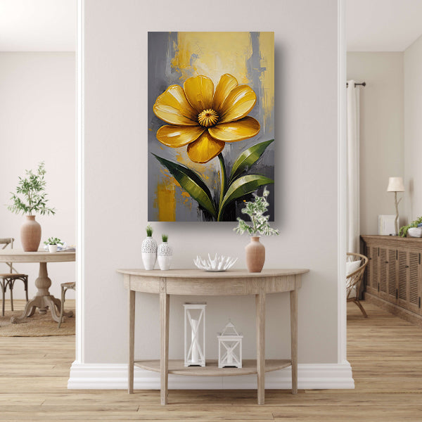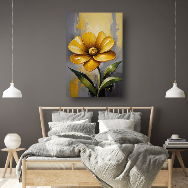 Impressionistische Gele Bloem op Moderne Achtergrond canvas met baklijst