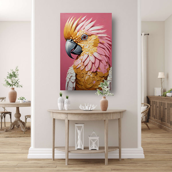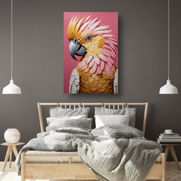 Impressionistische Papegaai in Goud en Roze Acrylglas