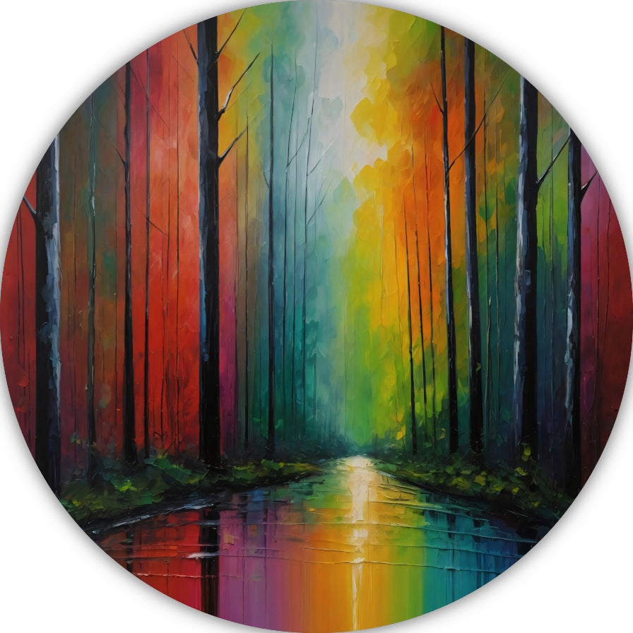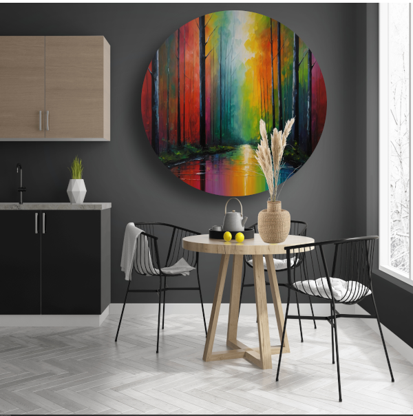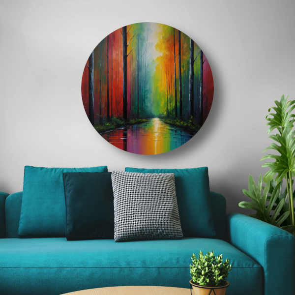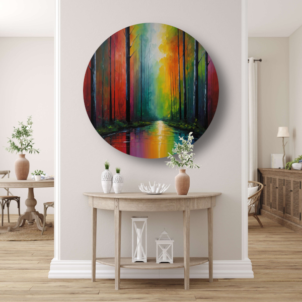Impressionistische Reflectie van een Kleurrijk Bos forex muurcirkel