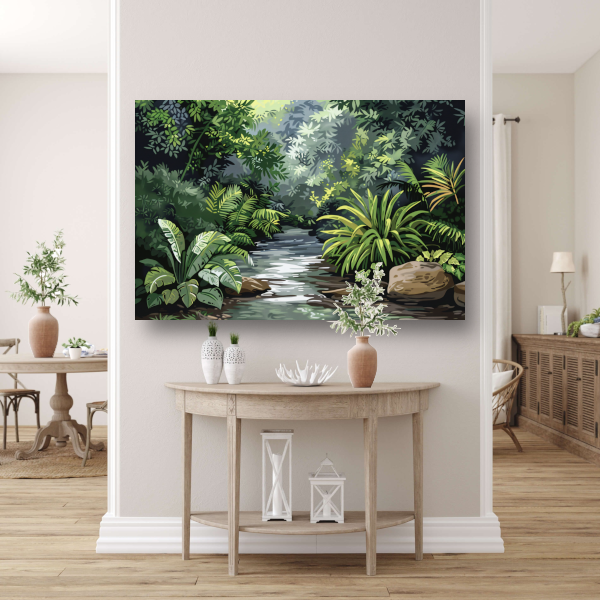 Breng de schoonheid van de jungle naar binnen met dit prachtige kunstwerk op acrylglas. Het zal zeker een vleugje natuur en sereniteit toevoegen aan elke kamer in je huis. Bestel vandaag nog en geniet binnenkort van deze adembenemende afbeelding in jouw interieur.