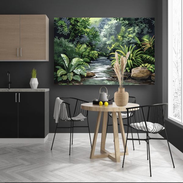 Een canvas met baklijst geeft je interieur een luxe en afgewerkte uitstraling. Onze baklijsten zijn gemaakt van hoogwaardig hout en verkrijgbaar in zwart met een zichtbare houtnerfstructuur, wat een moderne en elegante look biedt. De lijst heeft een framedikte van 3,5 cm. De montage van het canvas in de baklijst en aan de muur is eenvoudig.