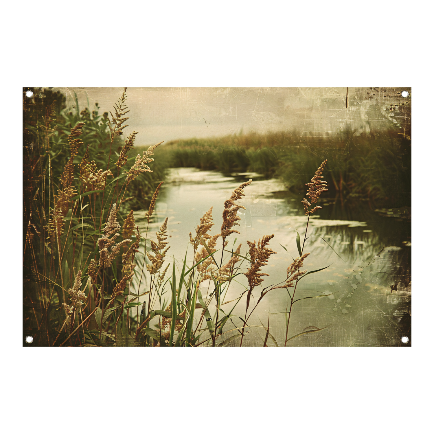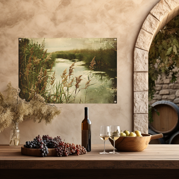 Impressionistische rivier met bomen tuinposter
