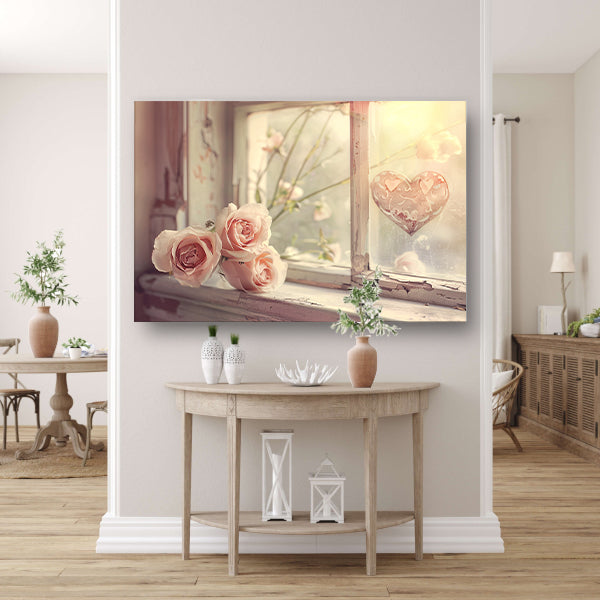 Impressionistische rozen op vensterbank poster