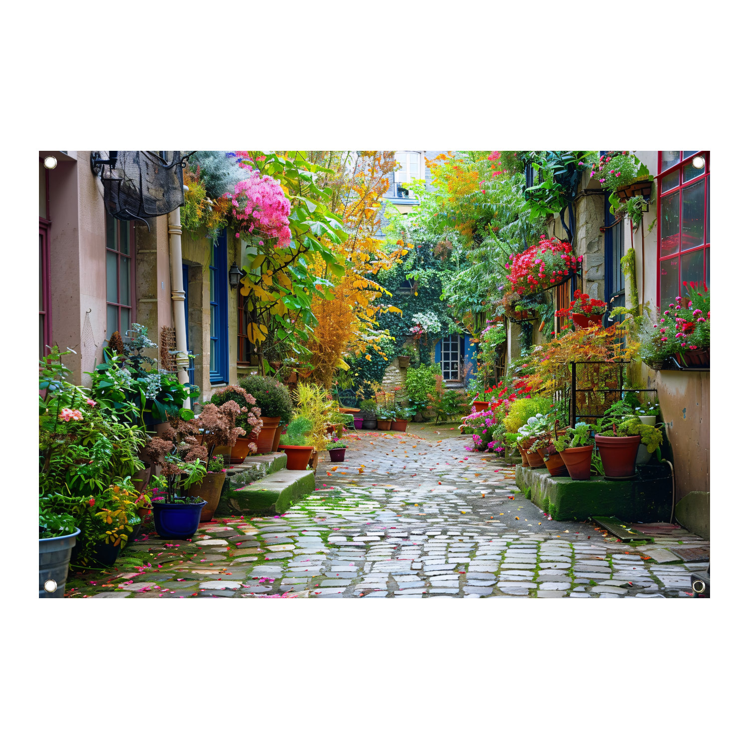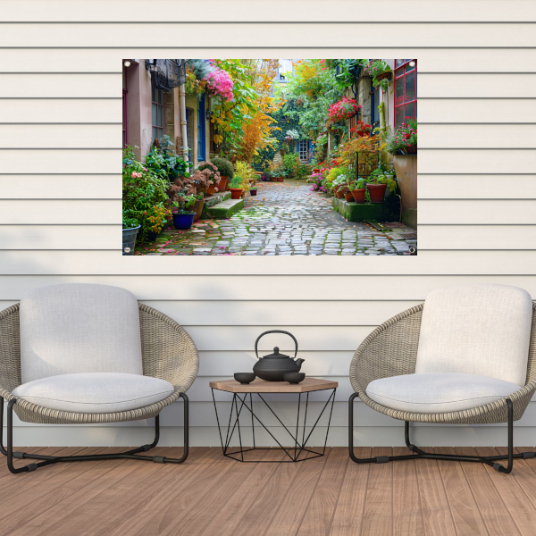 Impressionistische Straat met Bloeiende Planten tuinposter
