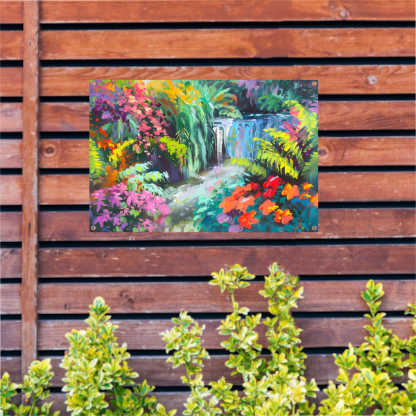Onze tuinposters zijn UV- en waterbestendig, waardoor ze bestand zijn tegen zon en regen en hun kleuren langdurig mooi blijven. Alle tuinposters van De Muurdecoratie zijn voorzien van ringen in de hoeken, zodat je ze eenvoudig kunt ophangen. Let op: onze tuinposters worden niet met ophangsysteem geleverd.