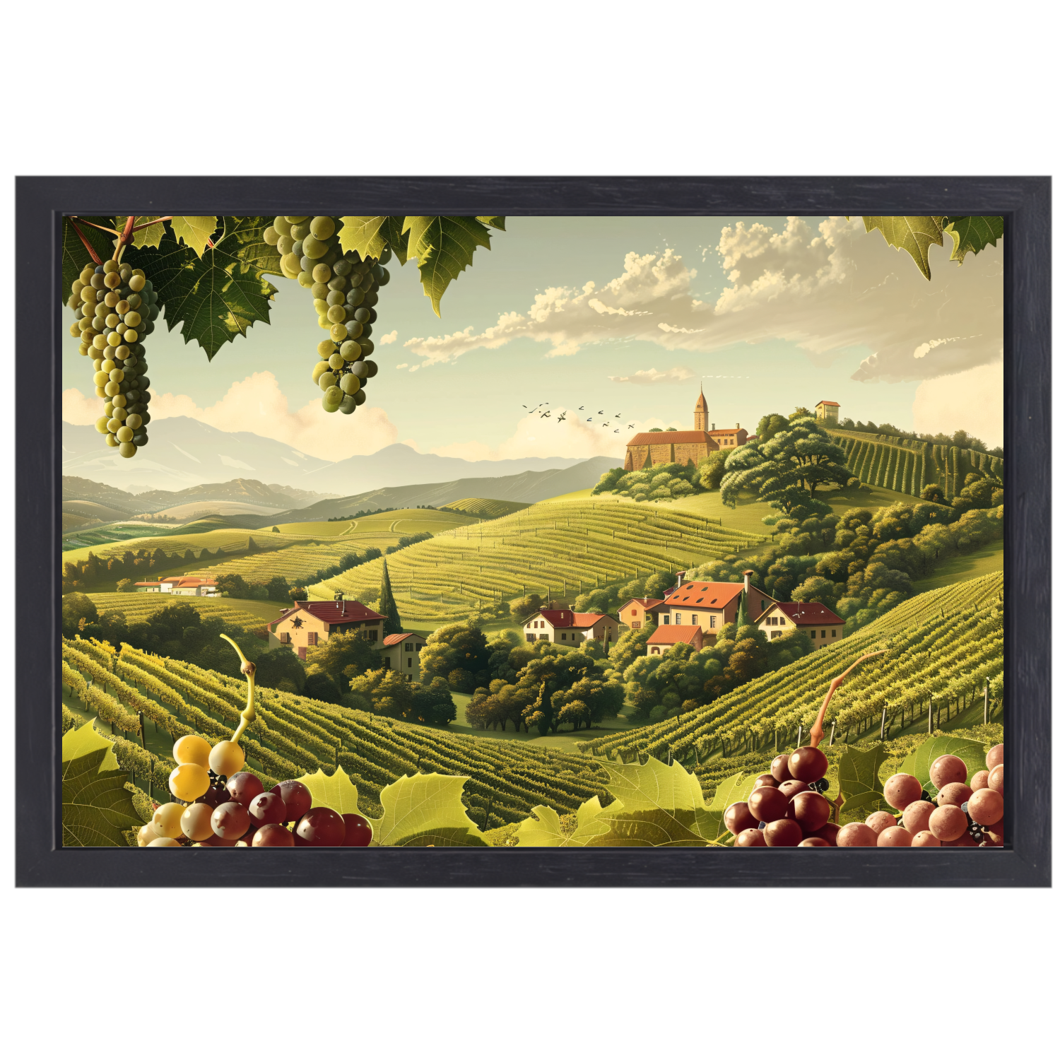Impressionistische wijngaard met druiven canvas met baklijst