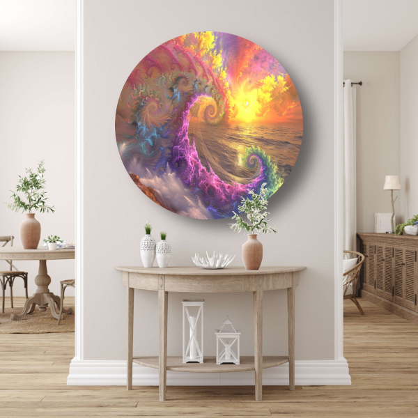 Dibond, ook wel aluminium, is een stevig en duurzaam materiaal met een prachtige, strakke afwerking. De muurcirkel heeft een dikte van 3 mm en is voorzien van een haarscherpe UV-bestendige print, die jarenlang mooi blijft. Dankzij het gladde oppervlak komen kleuren extra intens en levendig naar voren. De muurcirkel wordt standaard met een ophangplaat geleverd.