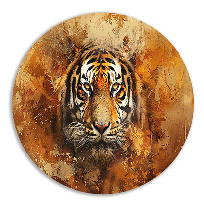 Breng de schoonheid en kracht van de tijger in huis met dit prachtige tijgerportret met abstracte achtergrond aluminium muurcirkel. Een must-have voor liefhebbers van wilde dieren en moderne kunst!
