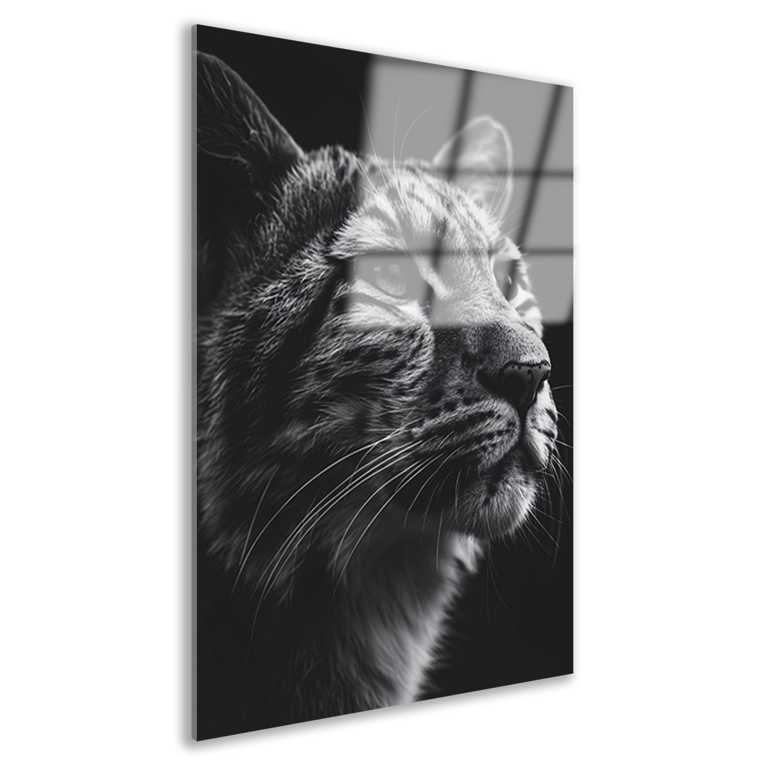 Indrukwekkend zwart-wit close-up portret van een luipaard acrylglas
