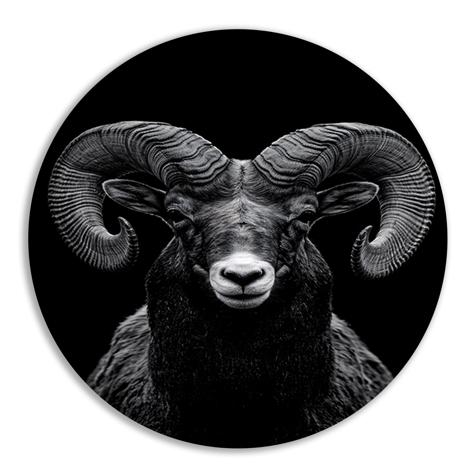 Indrukwekkend zwart-wit portret van een majestueuze ram forex muurcirkel