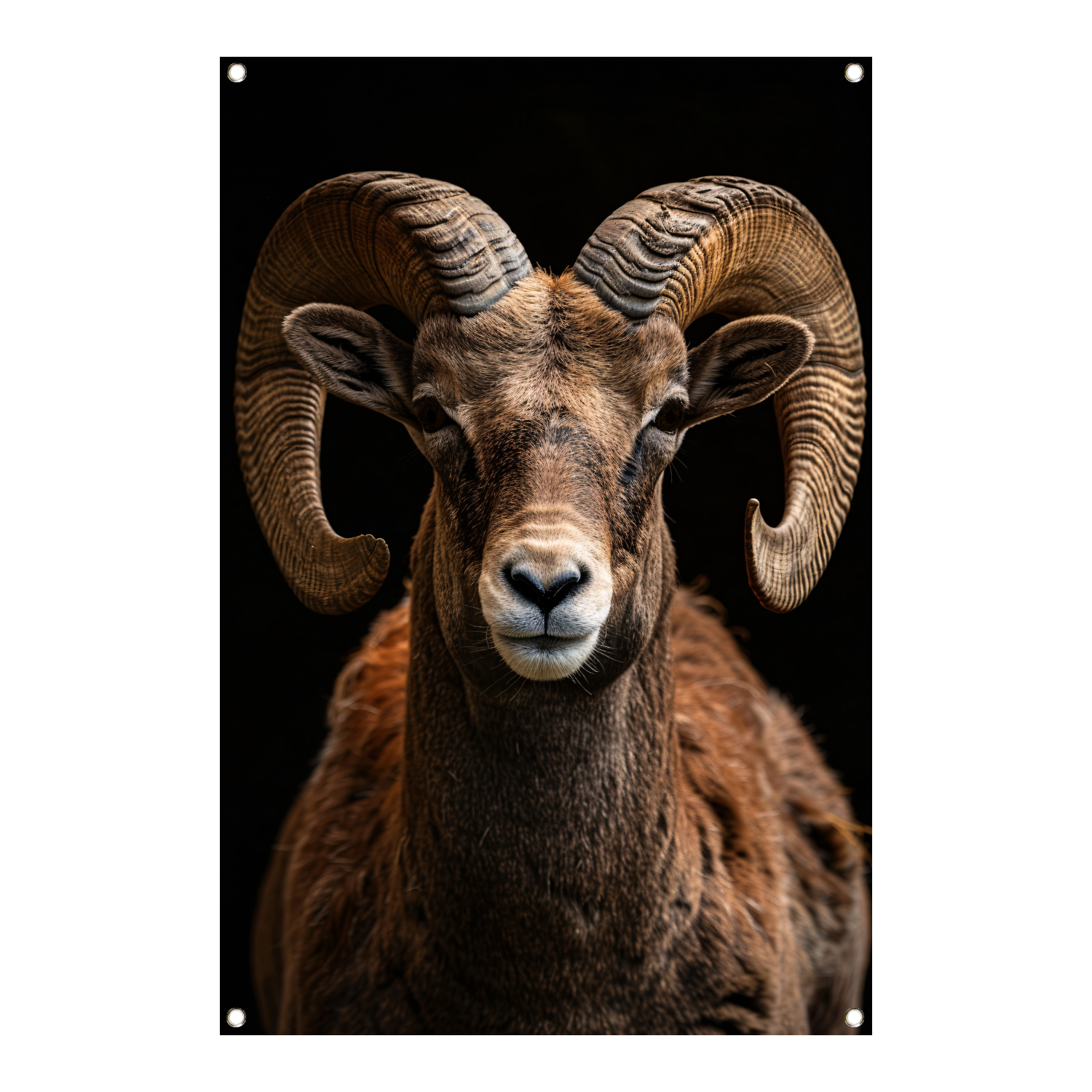 Indrukwekkende Ram met Elegante Krullende Hoorns tuinposter