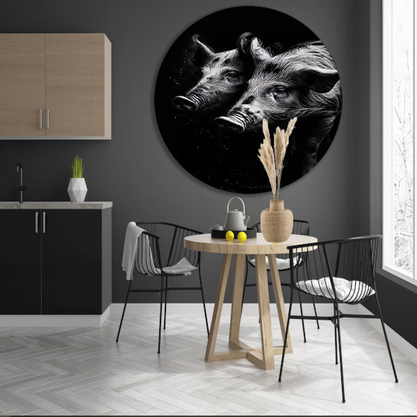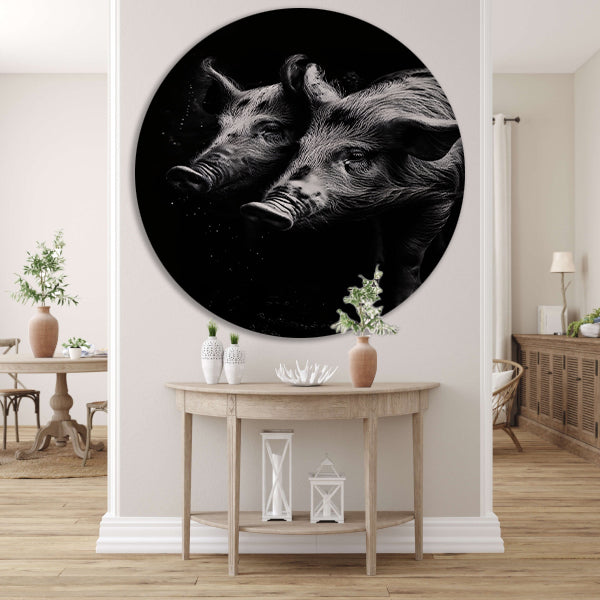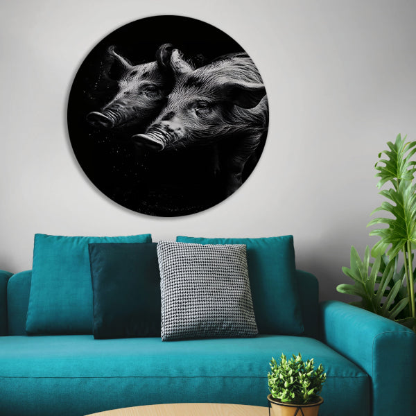 Intense blikken van zwart-wit varkens forex muurcirkel