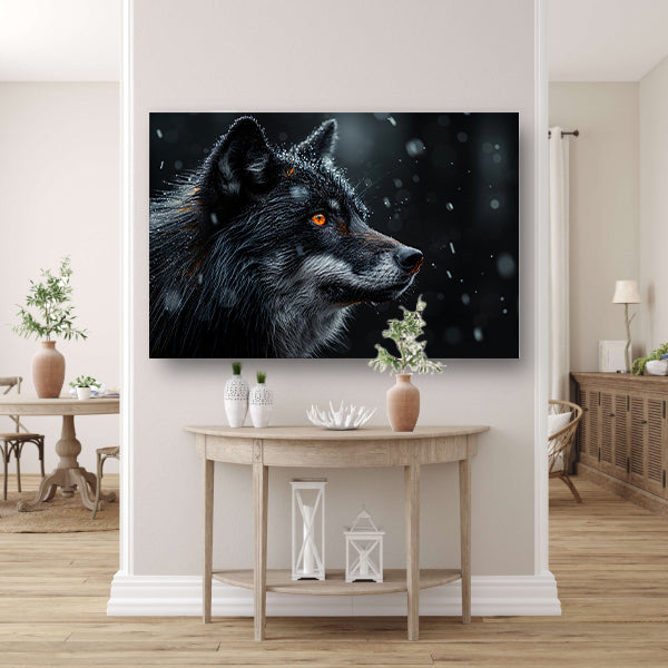 Intense wolvenblik in de sneeuw poster