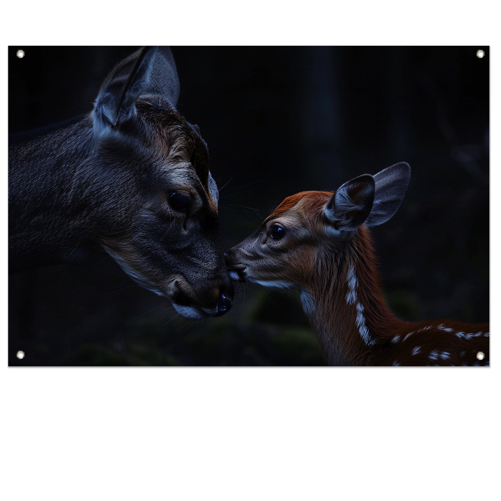 Intiem moment tussen hert en kalf tuinposter