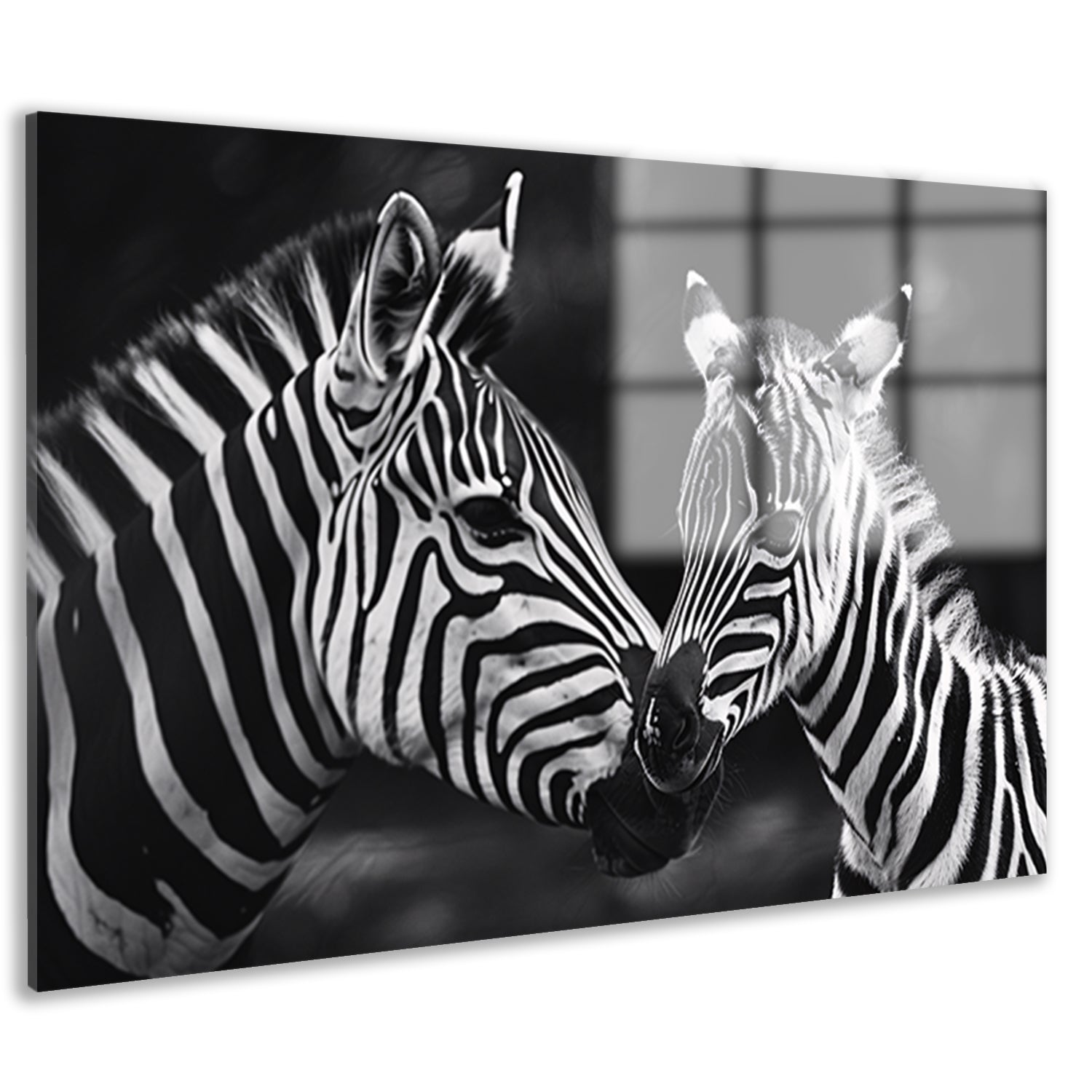 Intieme ontmoeting zebra moeder en jong acrylglas