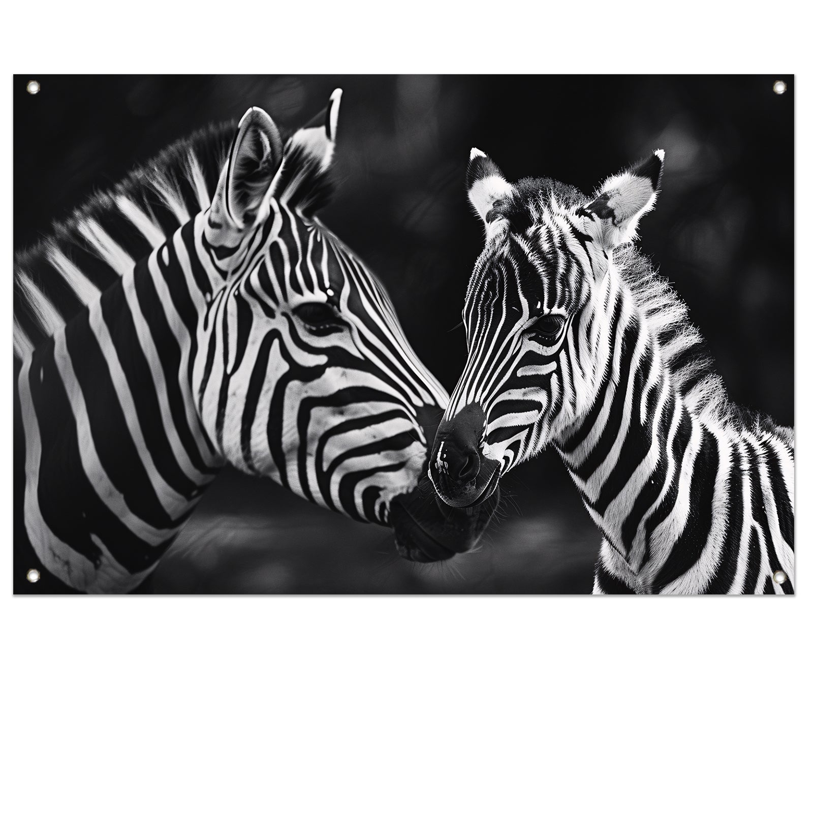 Intieme ontmoeting zebra moeder en jong tuinposter
