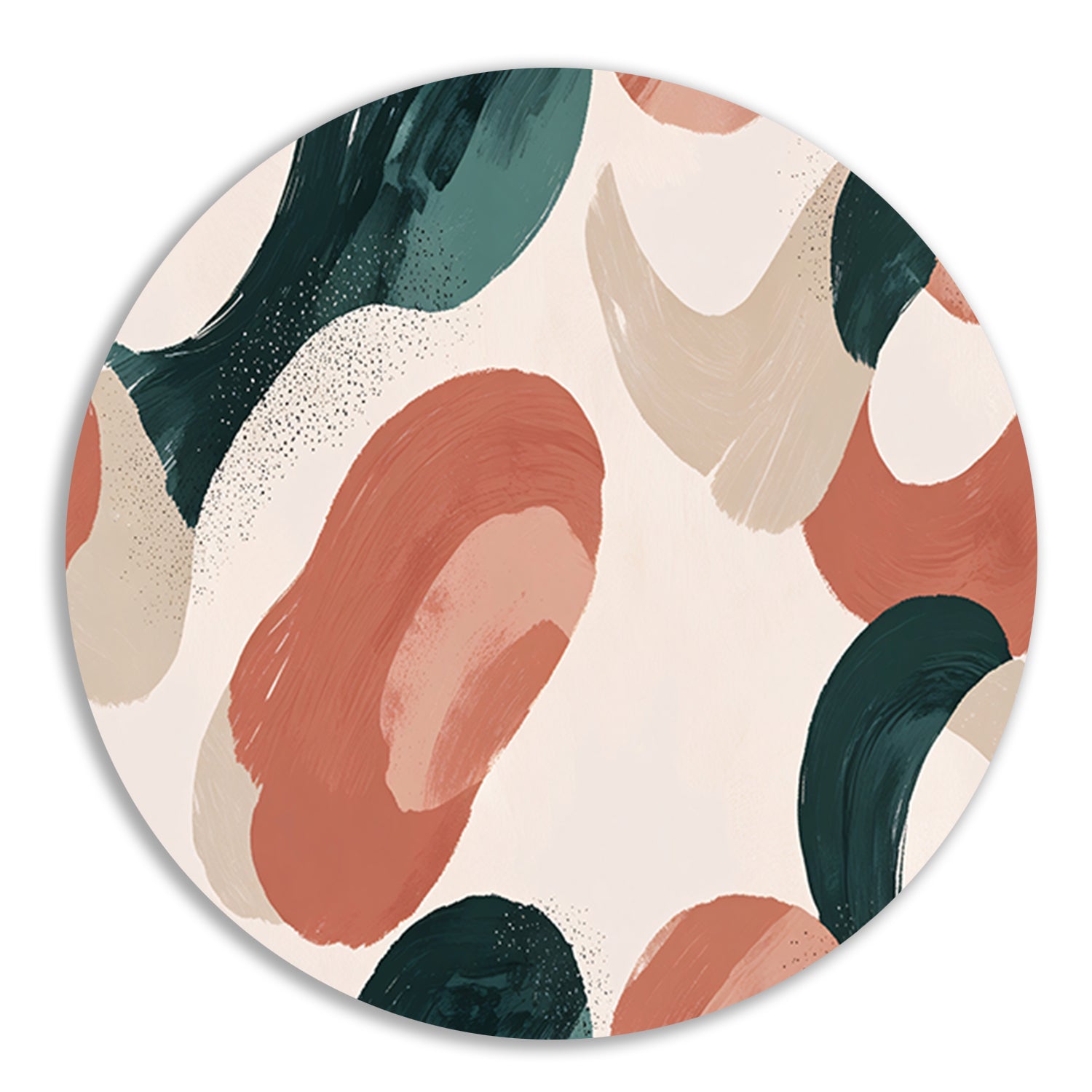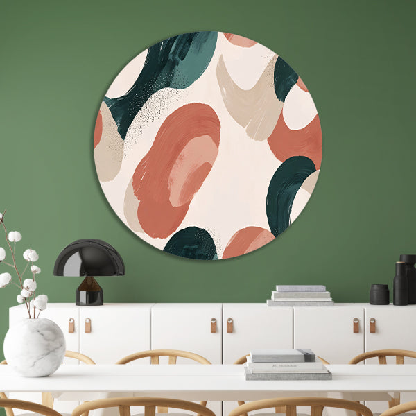 Japandi stijl abstract schilderij met aardetinten aluminium muurcirkel