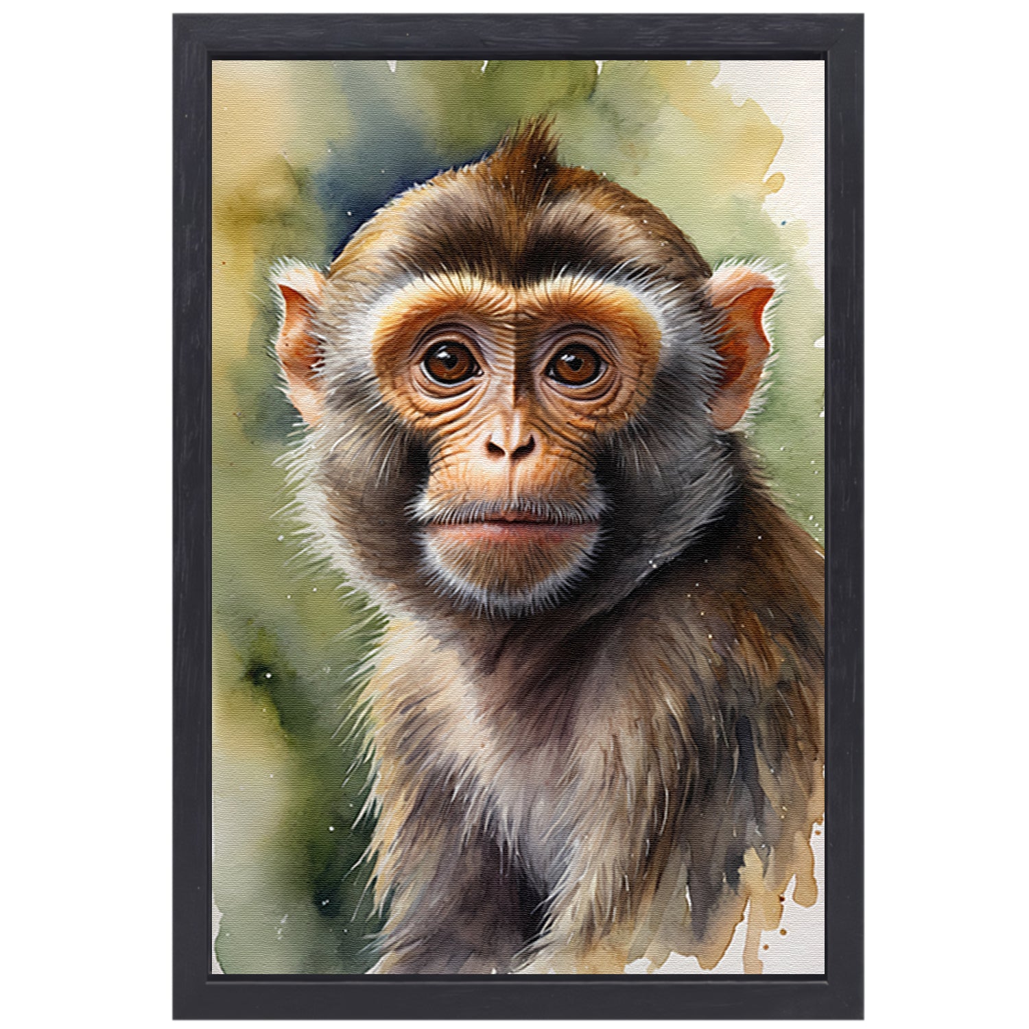 Jonge Aap in Aquarel Waterverf Stijl canvas met baklijst