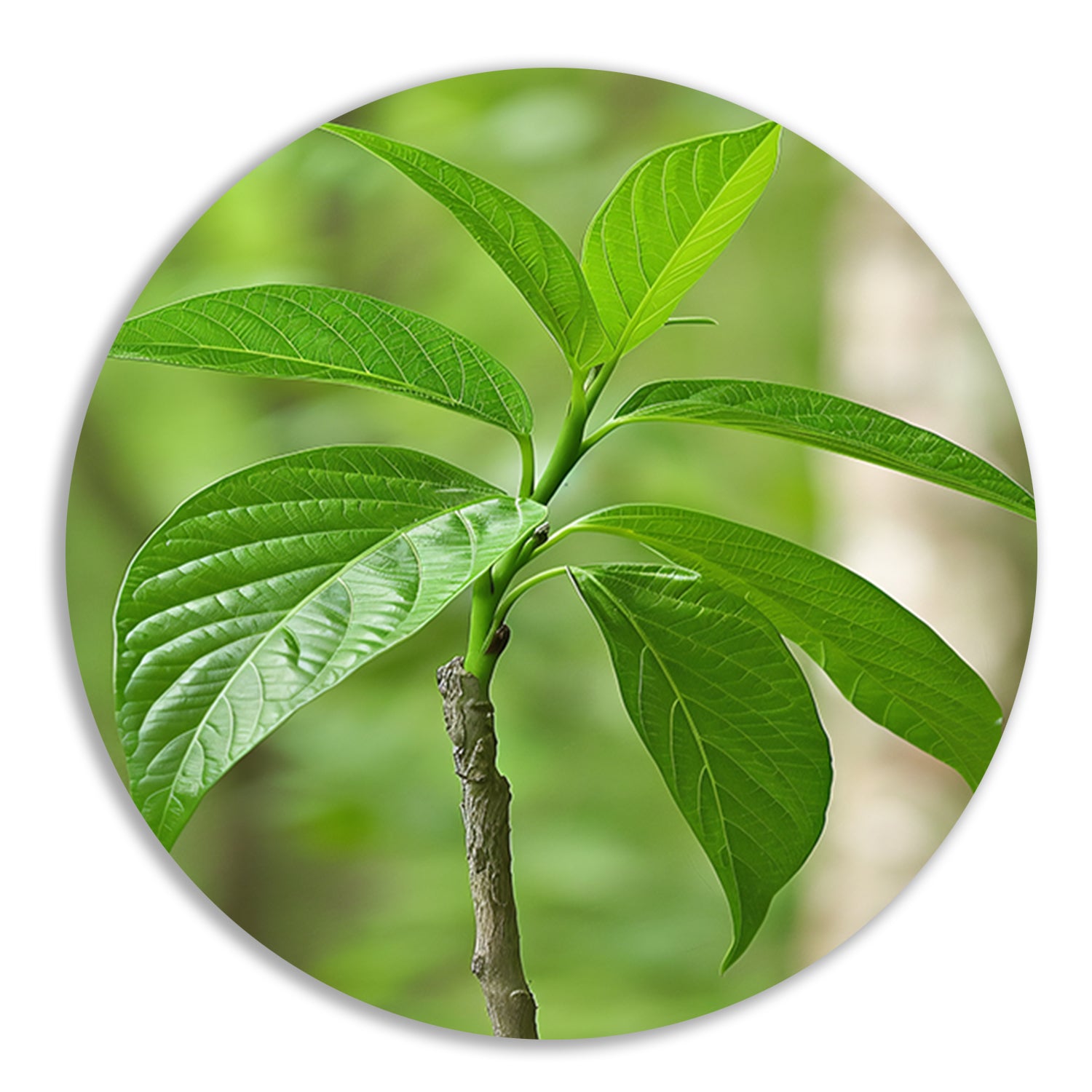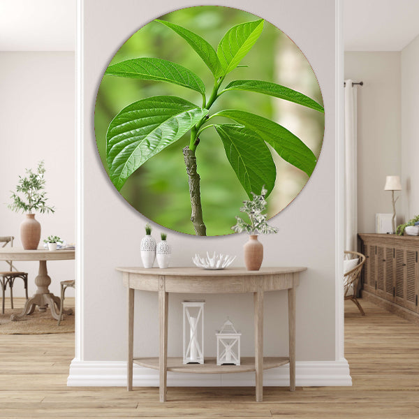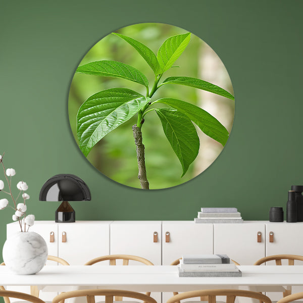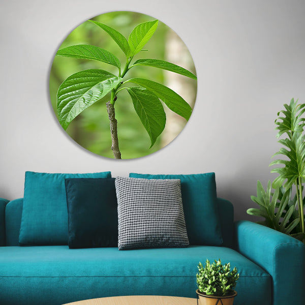 Jonge groene plant in de zon aluminium muurcirkel