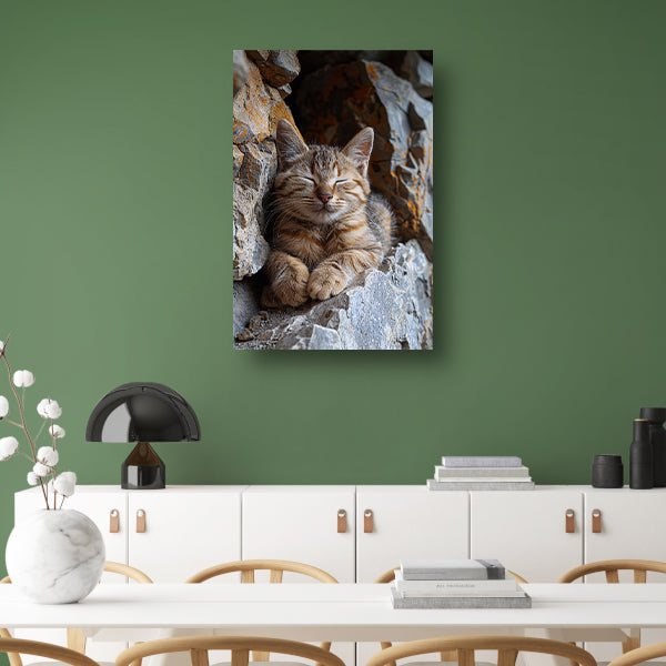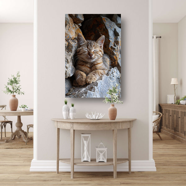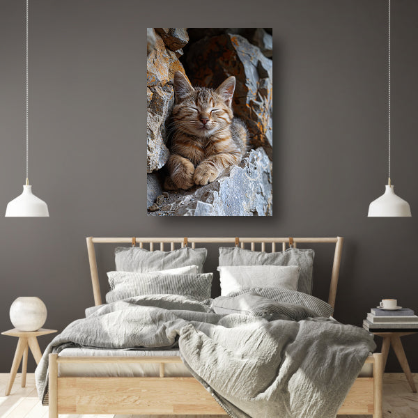 Jonge kat slaapt vredig tussen rotsen canvas