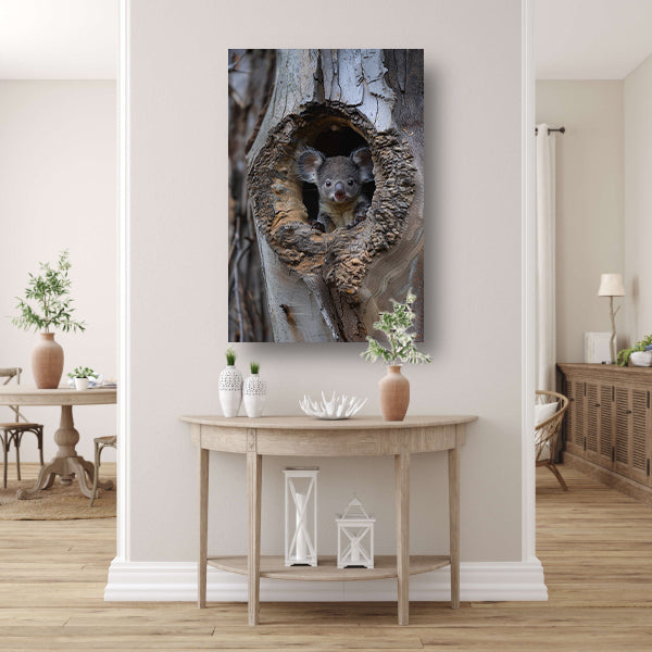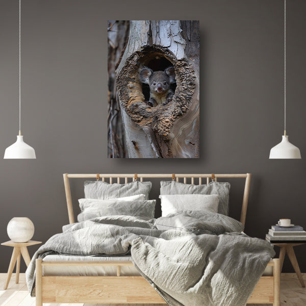 Jonge Koala Verkent de Wereld vanuit Boomholte canvas