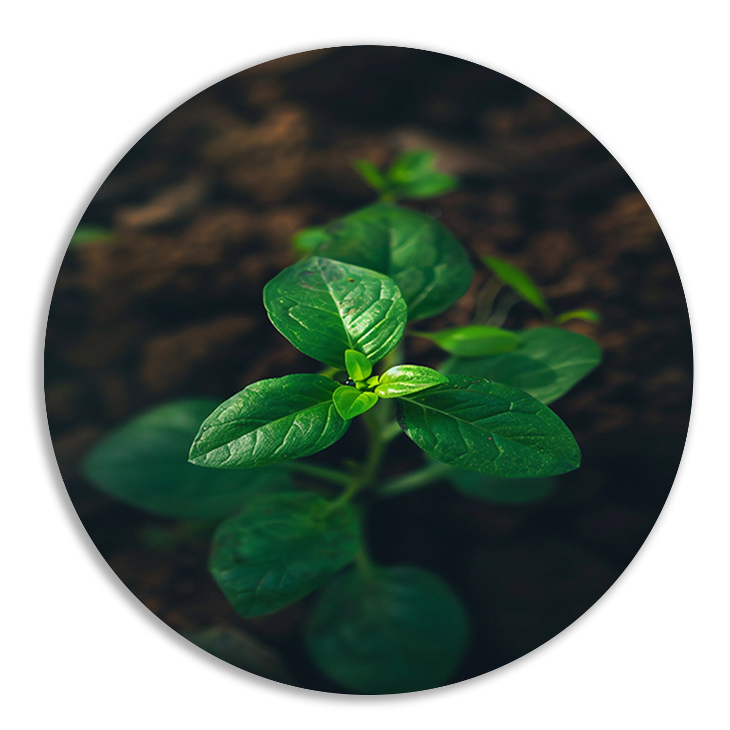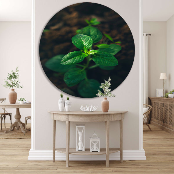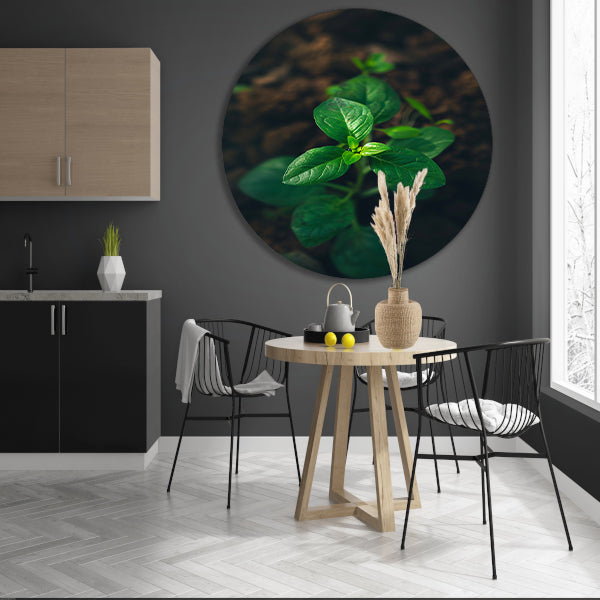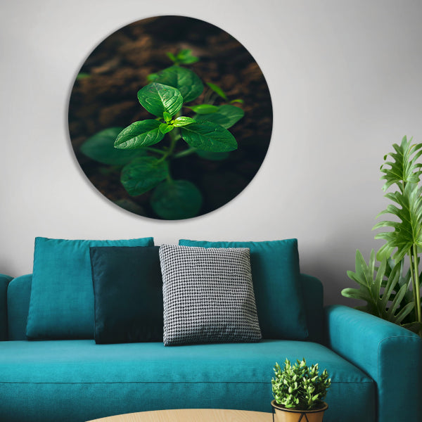 Jonge plant in het zonlicht aluminium muurcirkel
