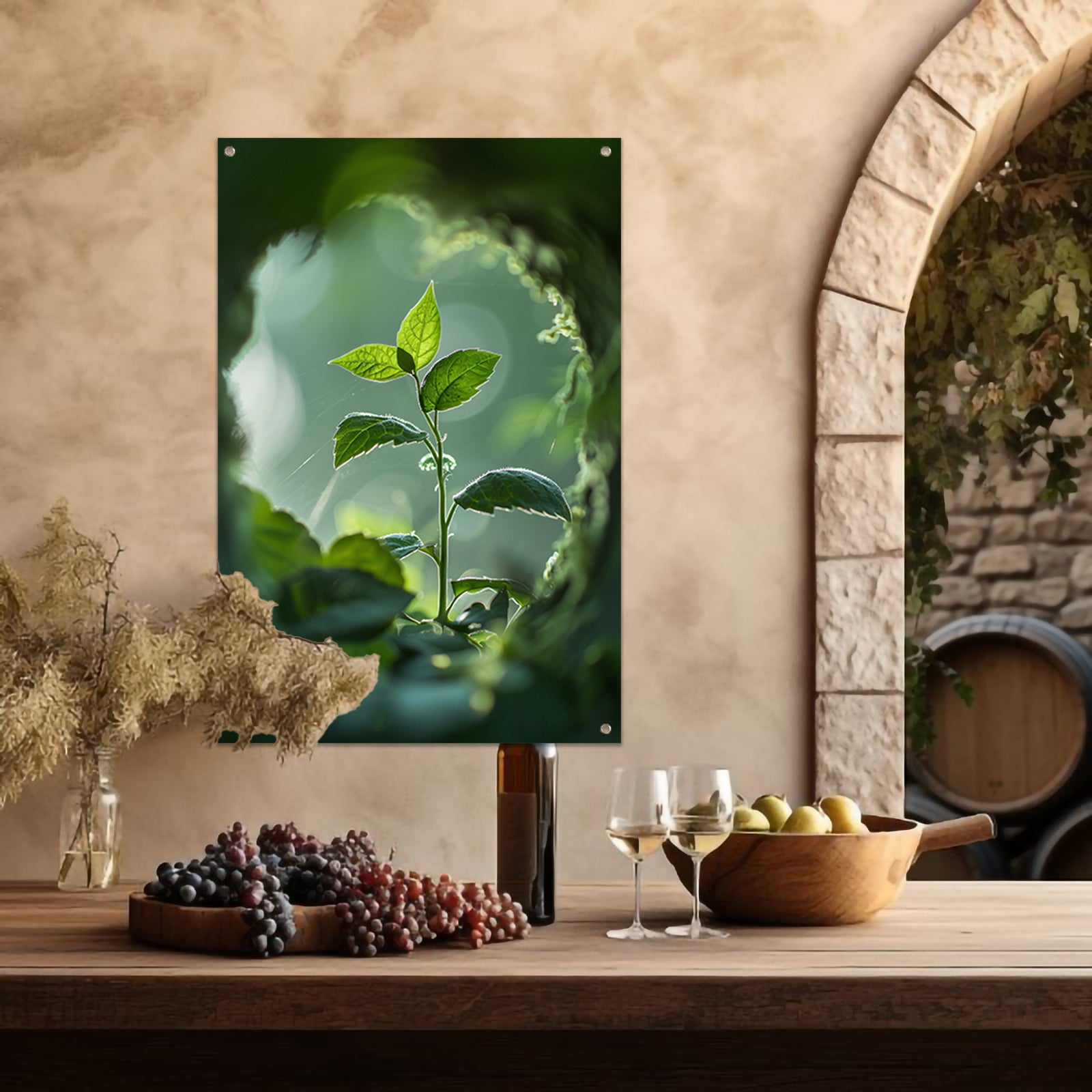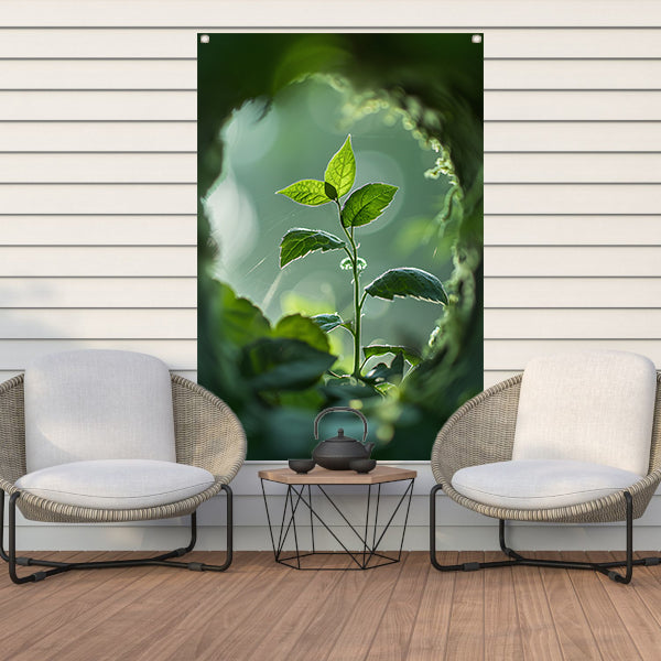 Jonge plant in het zonlicht tuinposter