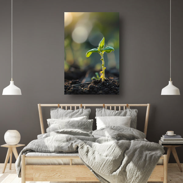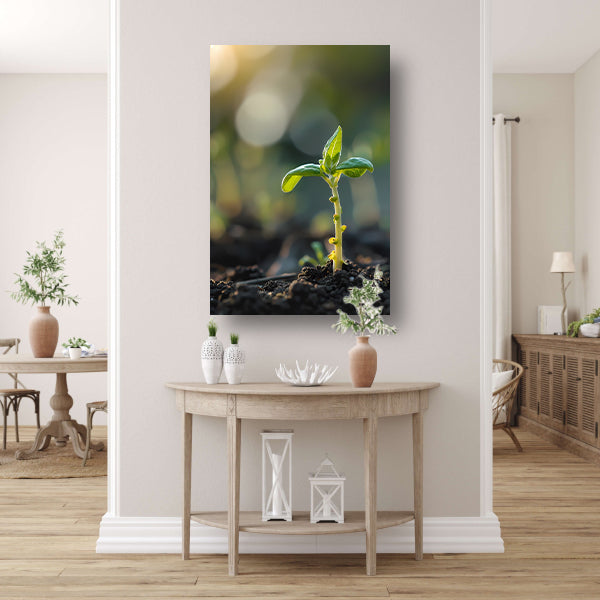 Jonge plant in ochtendzon canvas