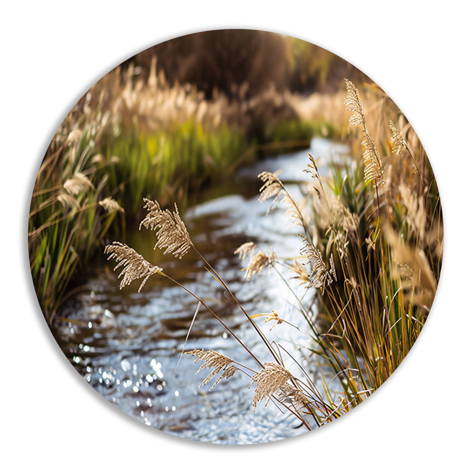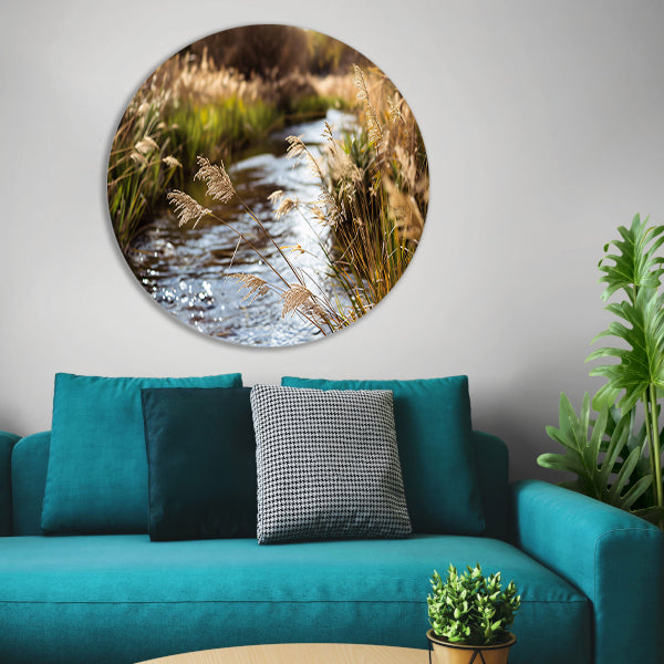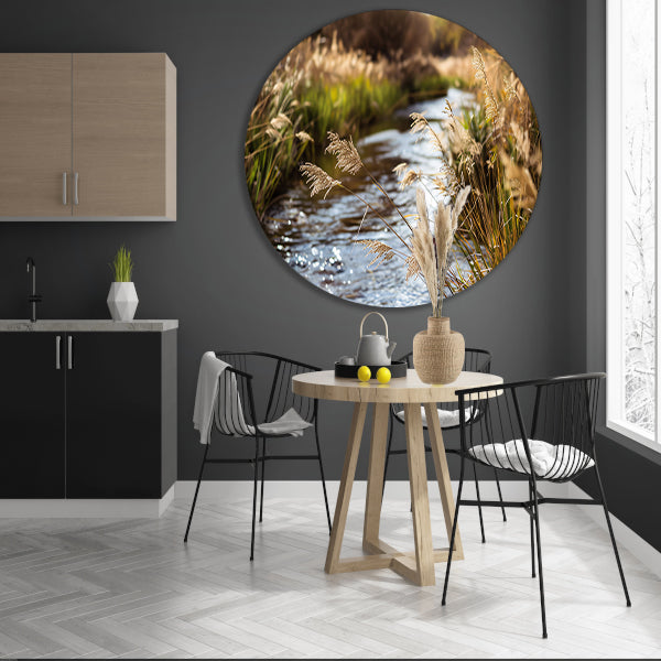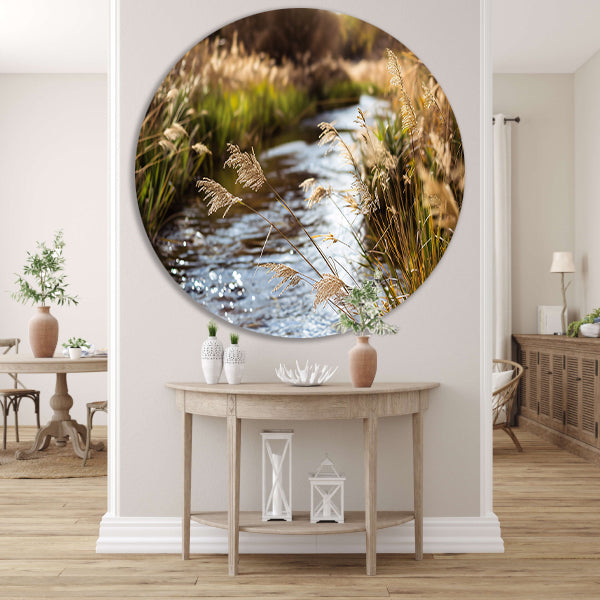 Kabbelende beek in herfstlandschap aluminium muurcirkel