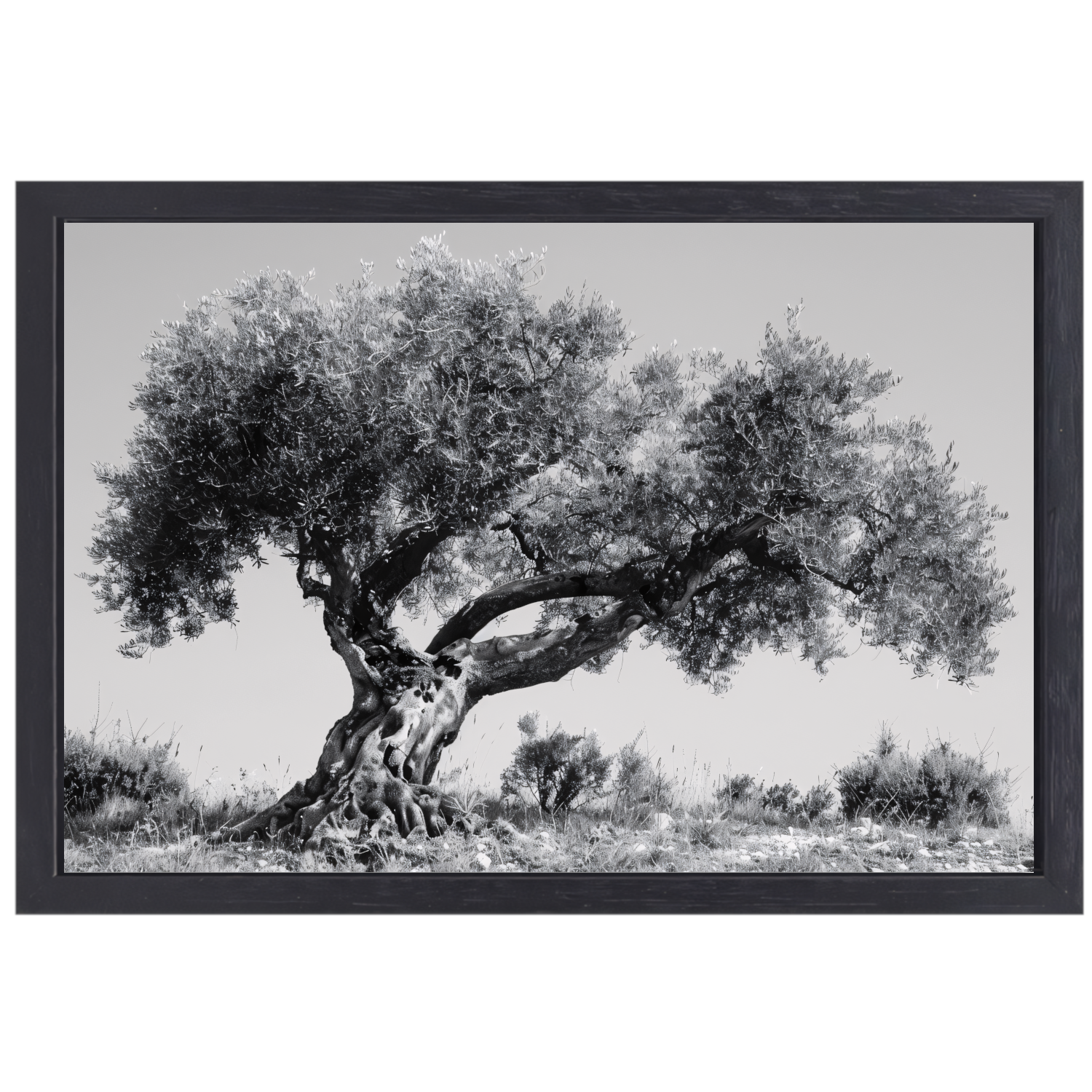 Klassieke Olijfboom in Zwart-Wit canvas met baklijst