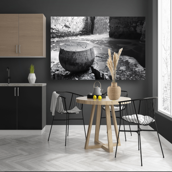 Een canvas met baklijst geeft je interieur een luxe en afgewerkte uitstraling. Onze baklijsten zijn gemaakt van hoogwaardig hout en verkrijgbaar in zwart met een zichtbare houtnerfstructuur, wat een moderne en elegante look biedt. De lijst heeft een framedikte van 3,5 cm. De montage van het canvas in de baklijst en aan de muur is eenvoudig.