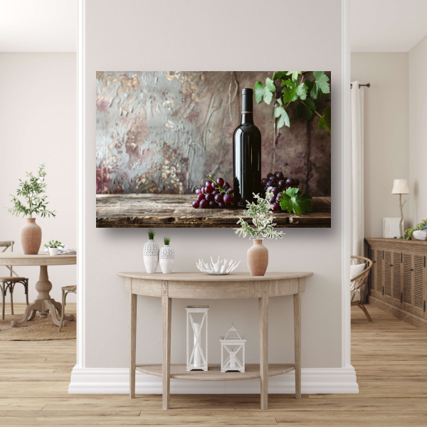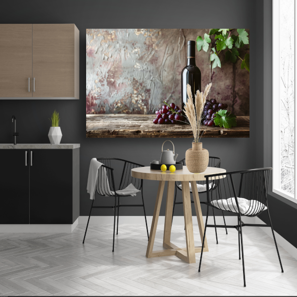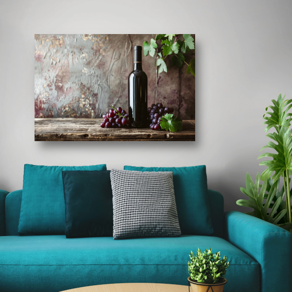 Klassieke wijn met druiven op tafel canvas met baklijst
