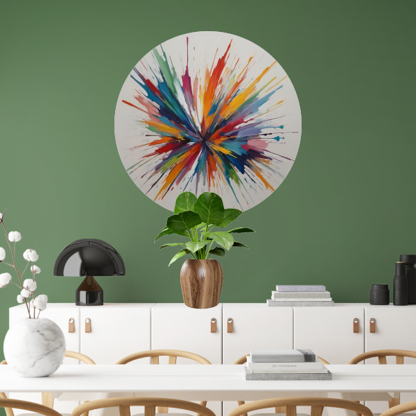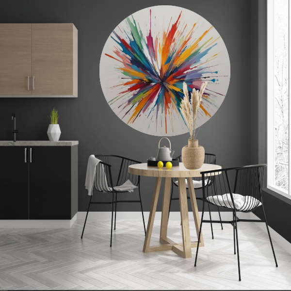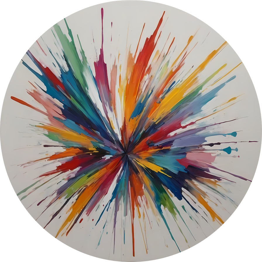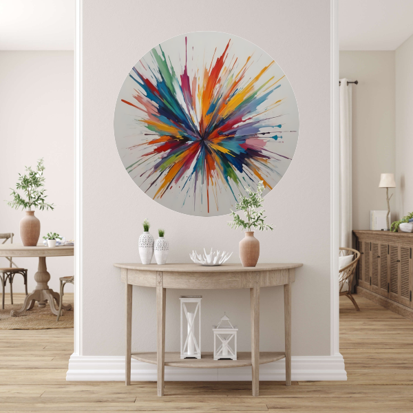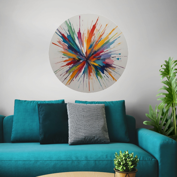 Kleurexplosie: Abstracte Symfonie in Levendige Tinten aluminium muurcirkel