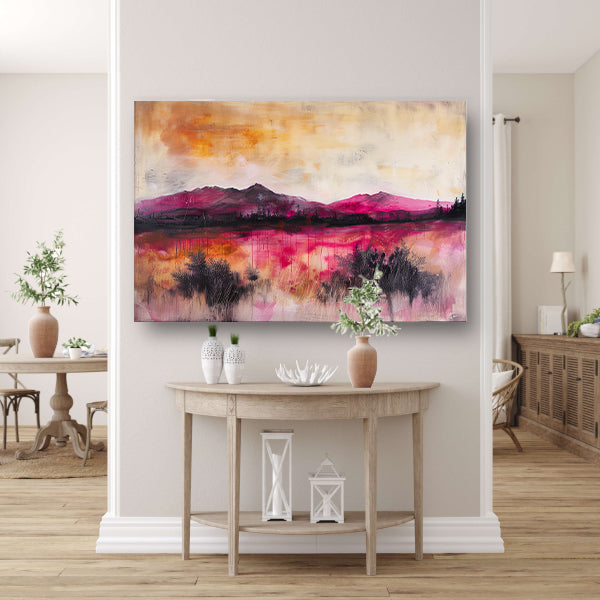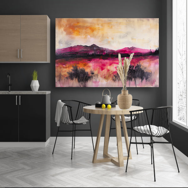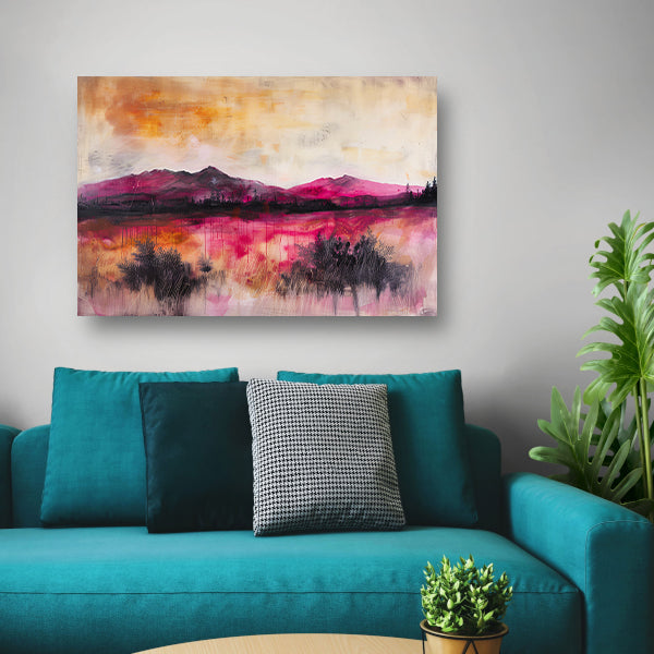 Kleurrijk abstract berglandschap met natuur canvas met baklijst