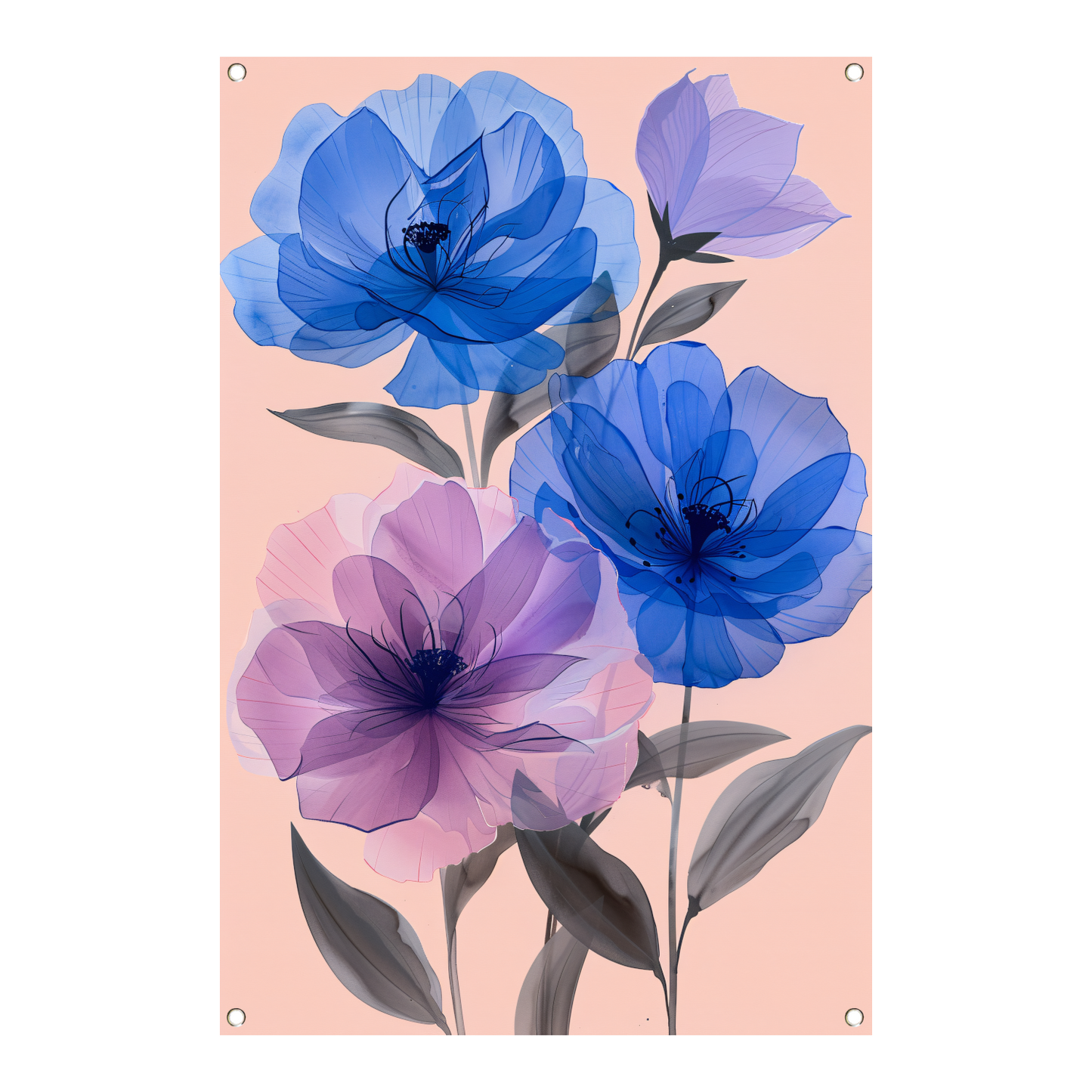 Kleurrijk abstract bloemen schilderij in blauw en paars tuinposter