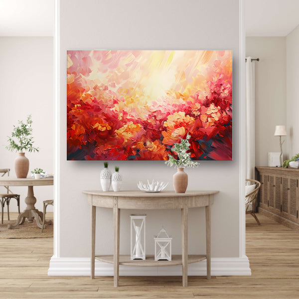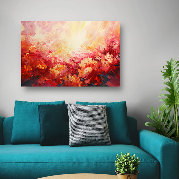 Kleurrijk abstract bloemenveld in warme tinten canvas met baklijst
