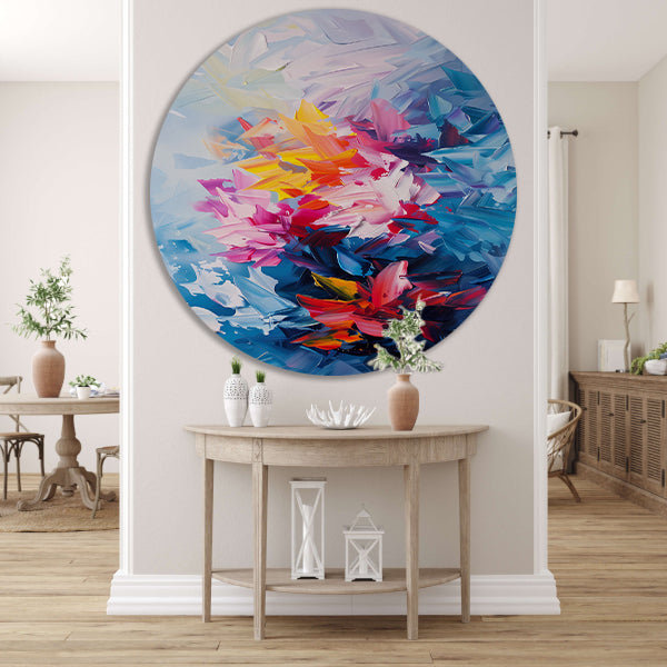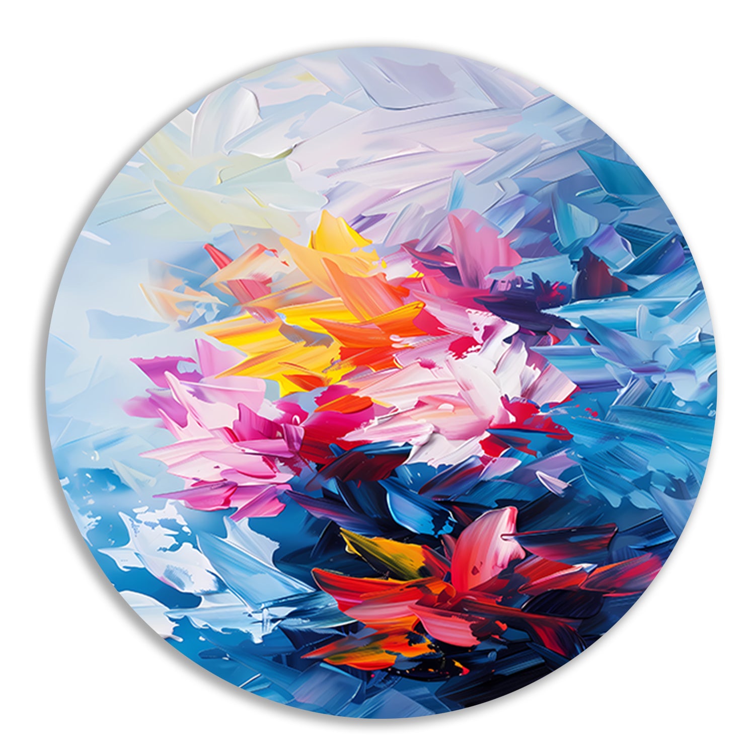Kleurrijk abstract bloemenveld schilderij aluminium muurcirkel