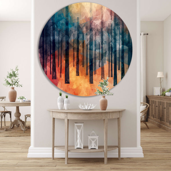 Breng de schoonheid van de natuur in huis met dit prachtige kleurrijke abstracte bos digitaal kunstwerk op aluminium muurcirkel. Perfect voor liefhebbers van natuur en kunst. Bestel vandaag nog en geef je interieur een unieke en kleurrijke uitstraling!