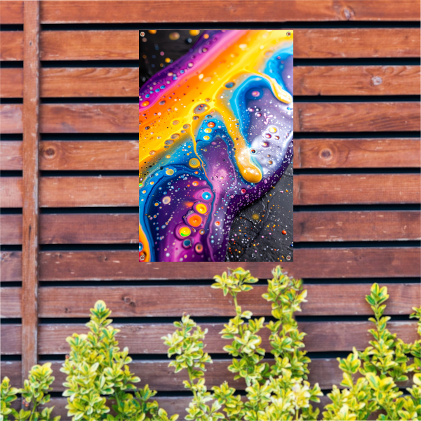 Onze tuinposters zijn UV- en waterbestendig, waardoor ze bestand zijn tegen zon en regen en hun kleuren langdurig mooi blijven. Alle tuinposters van De Muurdecoratie zijn voorzien van ringen in de hoeken, zodat je ze eenvoudig kunt ophangen. Let op: onze tuinposters worden niet met ophangsysteem geleverd.