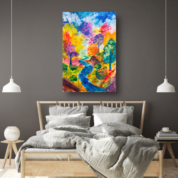 Kleurrijk abstract landschap aquarel schilderij poster