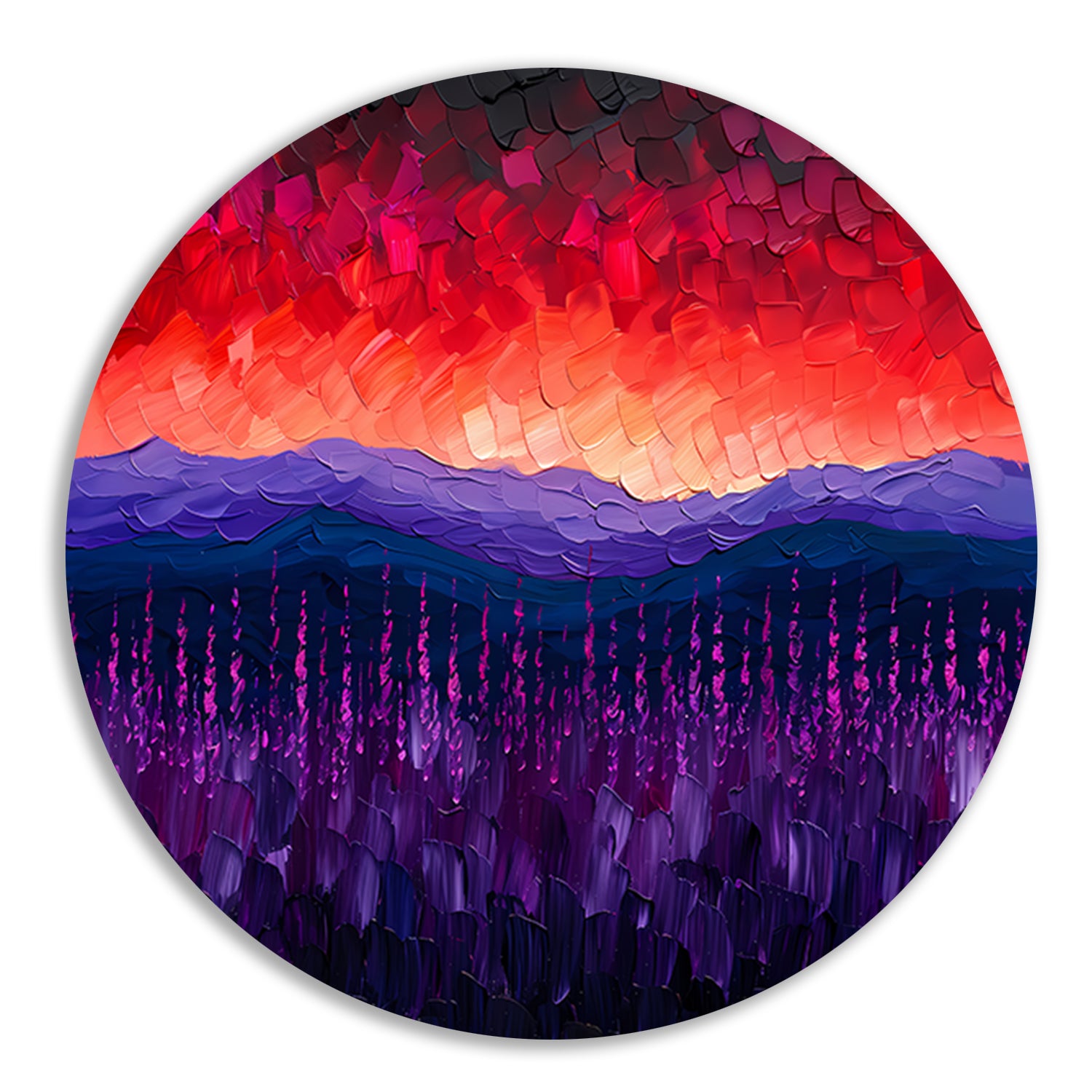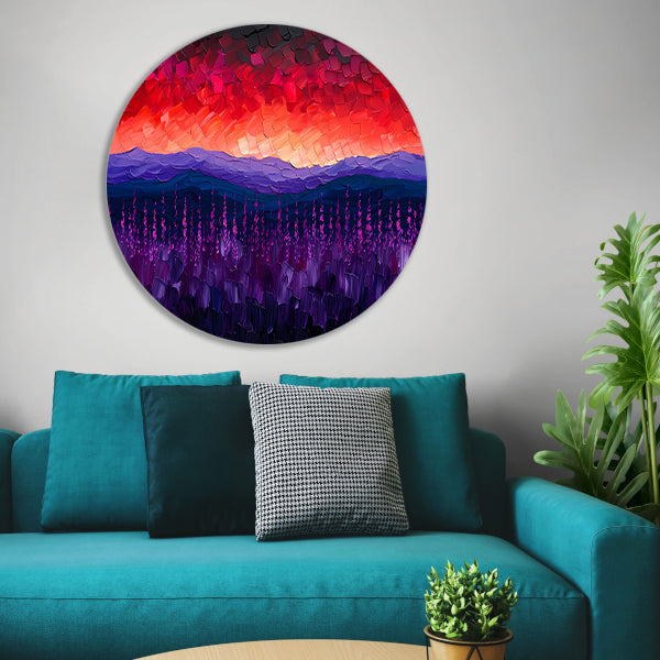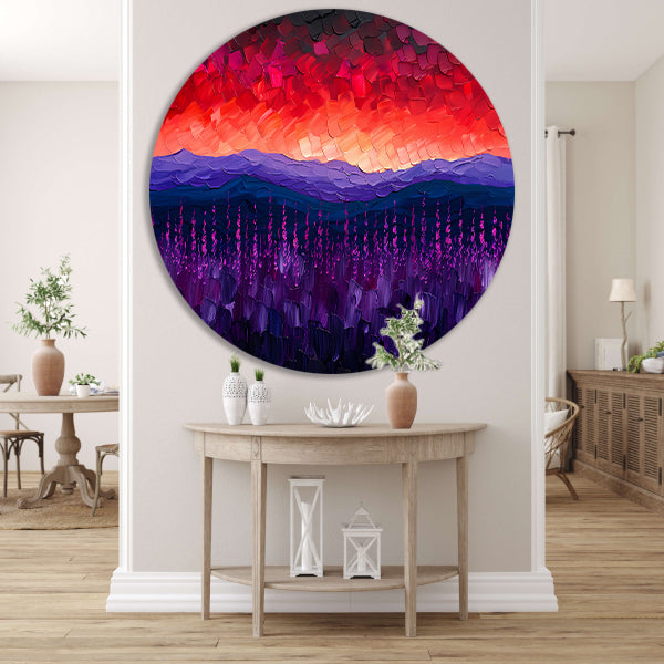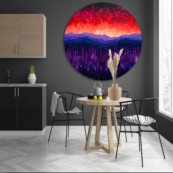 Kleurrijk abstract landschap met bloemen aluminium muurcirkel