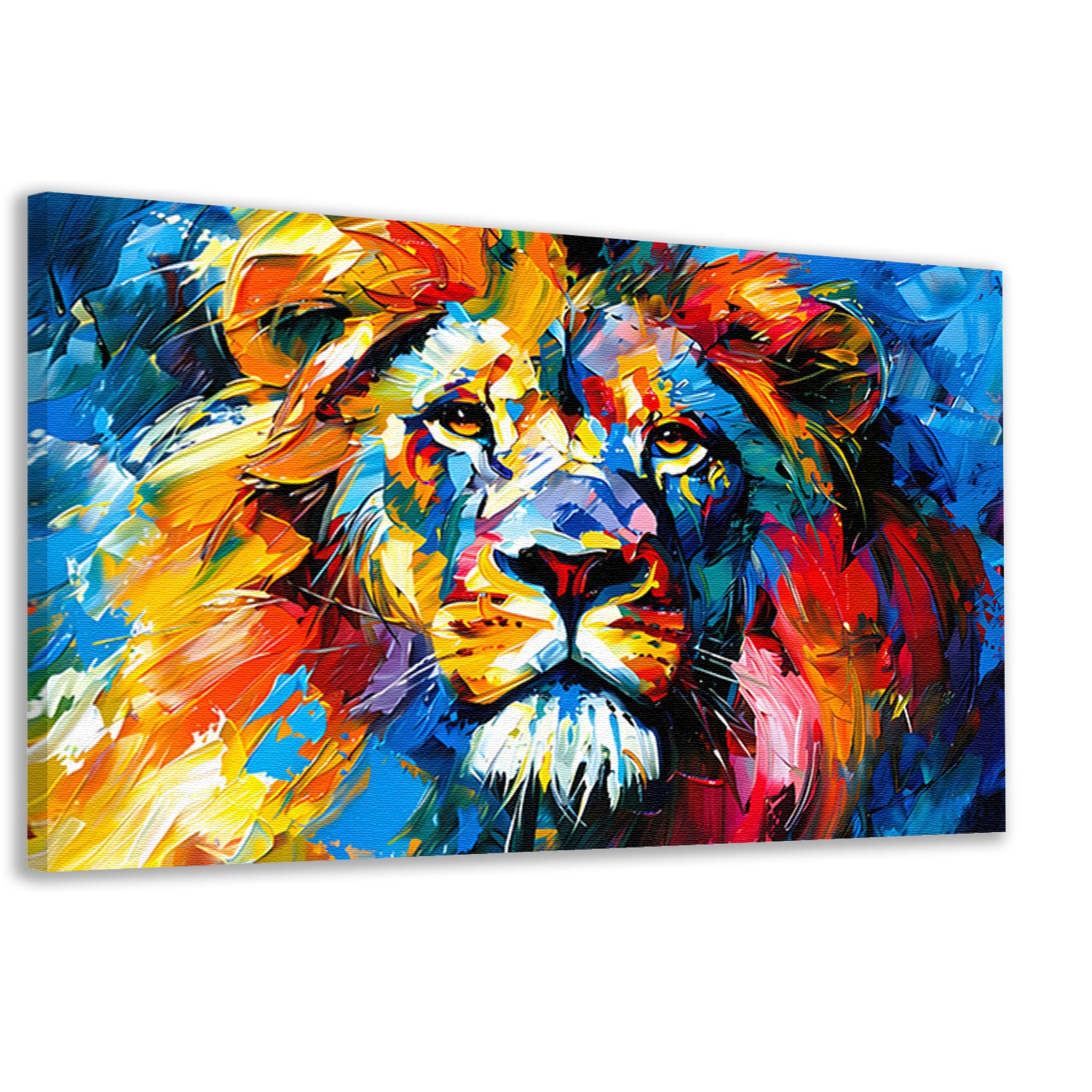 Kleurrijk abstract leeuw schilderij voor interieur canvas