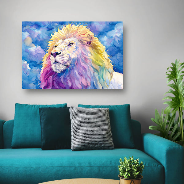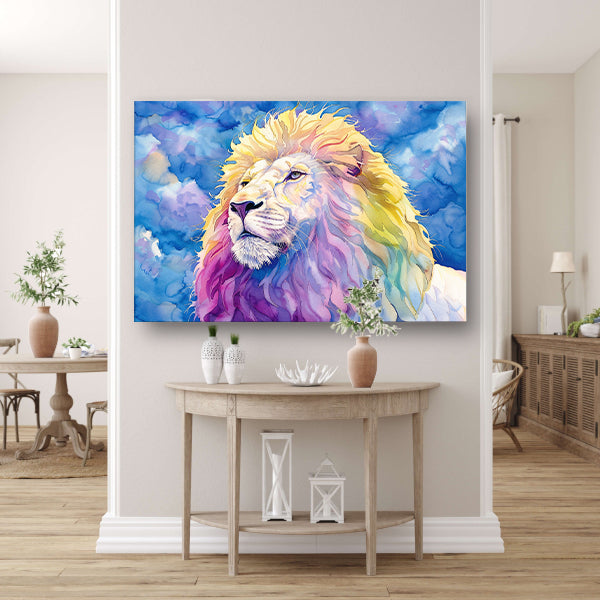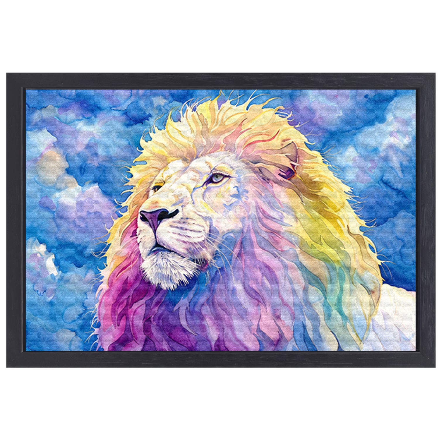 Kleurrijk abstract leeuwenschilderij in waterverf canvas met baklijst